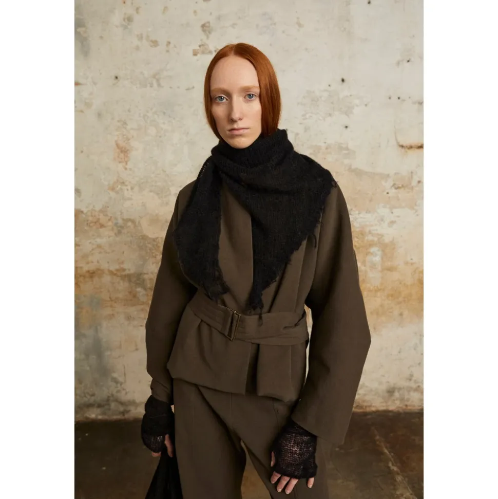 Oplev den sorte åben strikket bandana fra Cortana, et stilfuldt tilbehør fremstillet med præcision i Italien. Dens åbne strikkonstruktion og flossede kanter gør den til en alsidig tilføjelse til enhver garderobe. Produkt detaljer: Sort | Naturfibre | Åben strikstruktur | Flossede kanter |