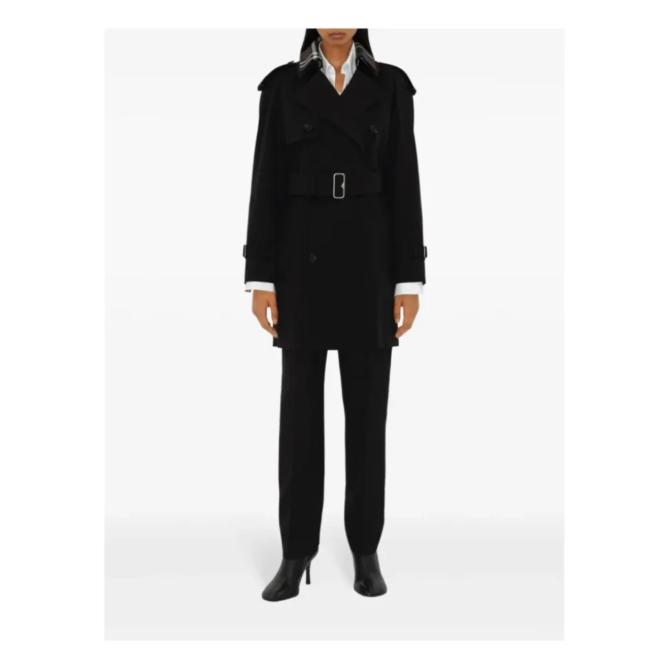 Opgrader din stil med denne sorte bomuldstrenchcoat fra Burberry, der har et klassisk ternet mønster og et alsidigt design. Perfekt til at tilføje et tidløst touch til enhver garderobe. Produkt detaljer: Sort | Bomuldsgabardine | Aftagelig krave | Dobbeltknappet lukning | Bælte ved ærmer og talje | Brede revers | Ternet mønster | To paspolerede sidelommer | Amerikansk slids bagpå | Ternet foring | Dimensioner og pasform: Regular fit | Sammensætning og pleje: 100% Bomuld | Renseri anbefales