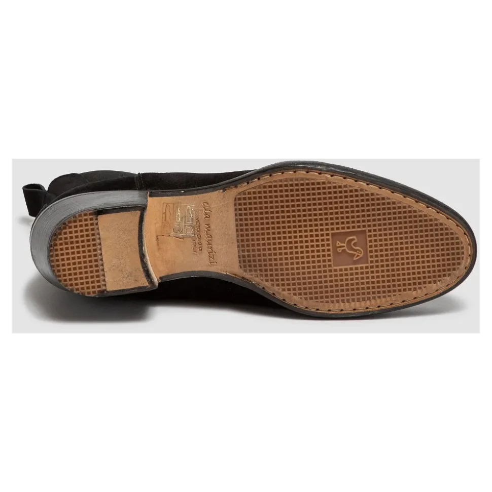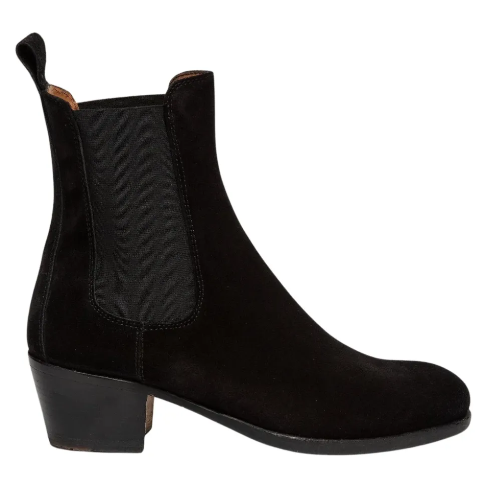 Forhøj din stil med disse Elia Maurizi Chelsea ankelstøvler. Håndlavet med blød vegetabilsk garvet og olieret ruskind læder, med indvendig foring i nappa og en gummisål syet til overdelen. I klassisk sort, har disse støvler en hæl på 5 cm og passer normalt.