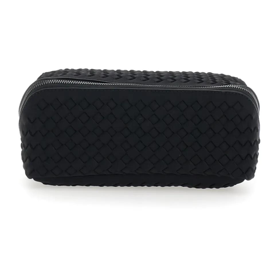 Naghedi håndtaske i økolæder med et flettet motiv og en toplynlåslukning. Designet til organiseret hverdagsbrug med et rent, struktureret look. Vigtigste egenskaber: Sort | Økolæder | Toplynlåslukning | Flettet motiv | Sølvfarvet metal | Sammensætning & pleje: Økolæder