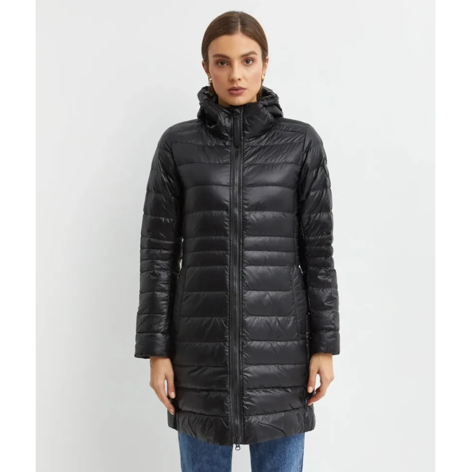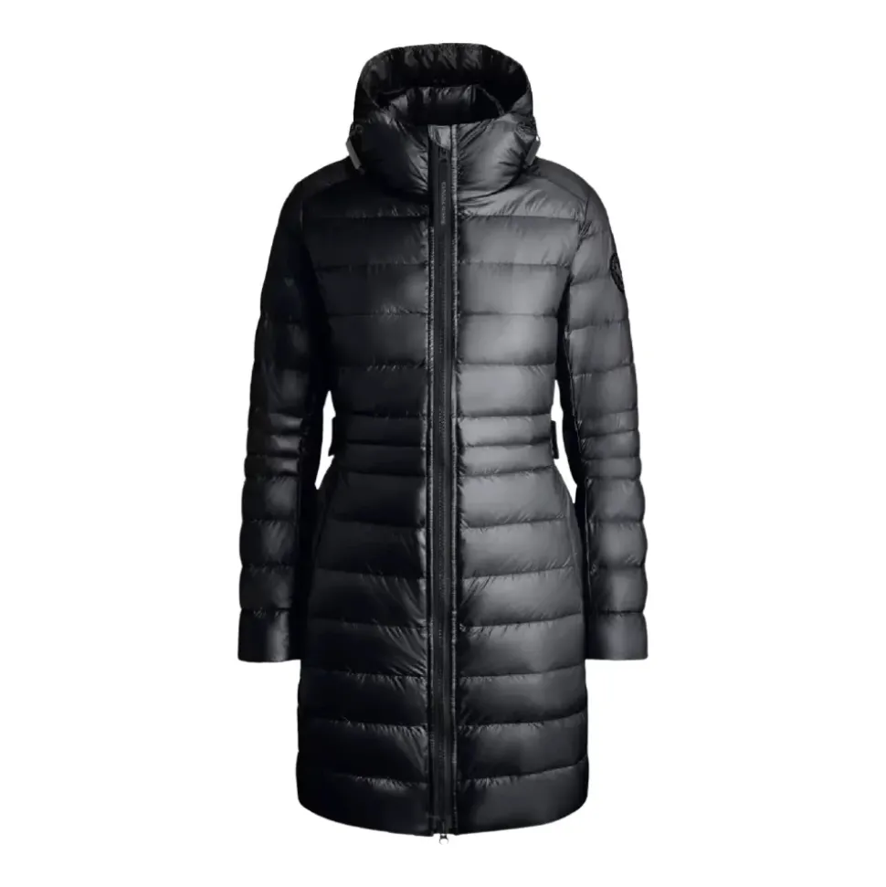 Hold dig varm med stil i den sorte Cypress dunfrakke fra Canada Goose. Denne frakke i midterlængde har et quiltet design, en tovejs lynlås, to eksterne lynlåslommer og to indvendige lommer. Udstyret med elastiske skulderstropper indvendigt, vil denne frakke holde dig varm i moderat vind op til -5°C. Lavet af genanvendte materialer, herunder dun, fjer og 100% nylon.