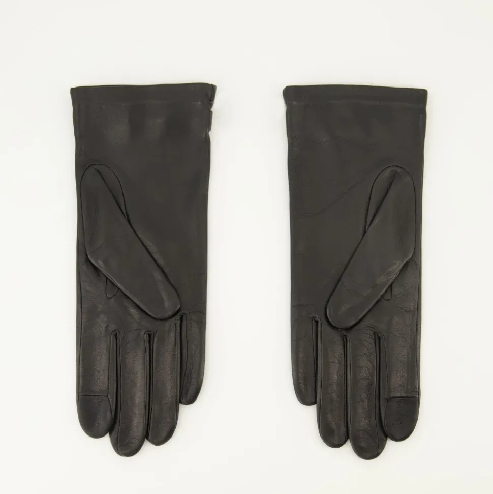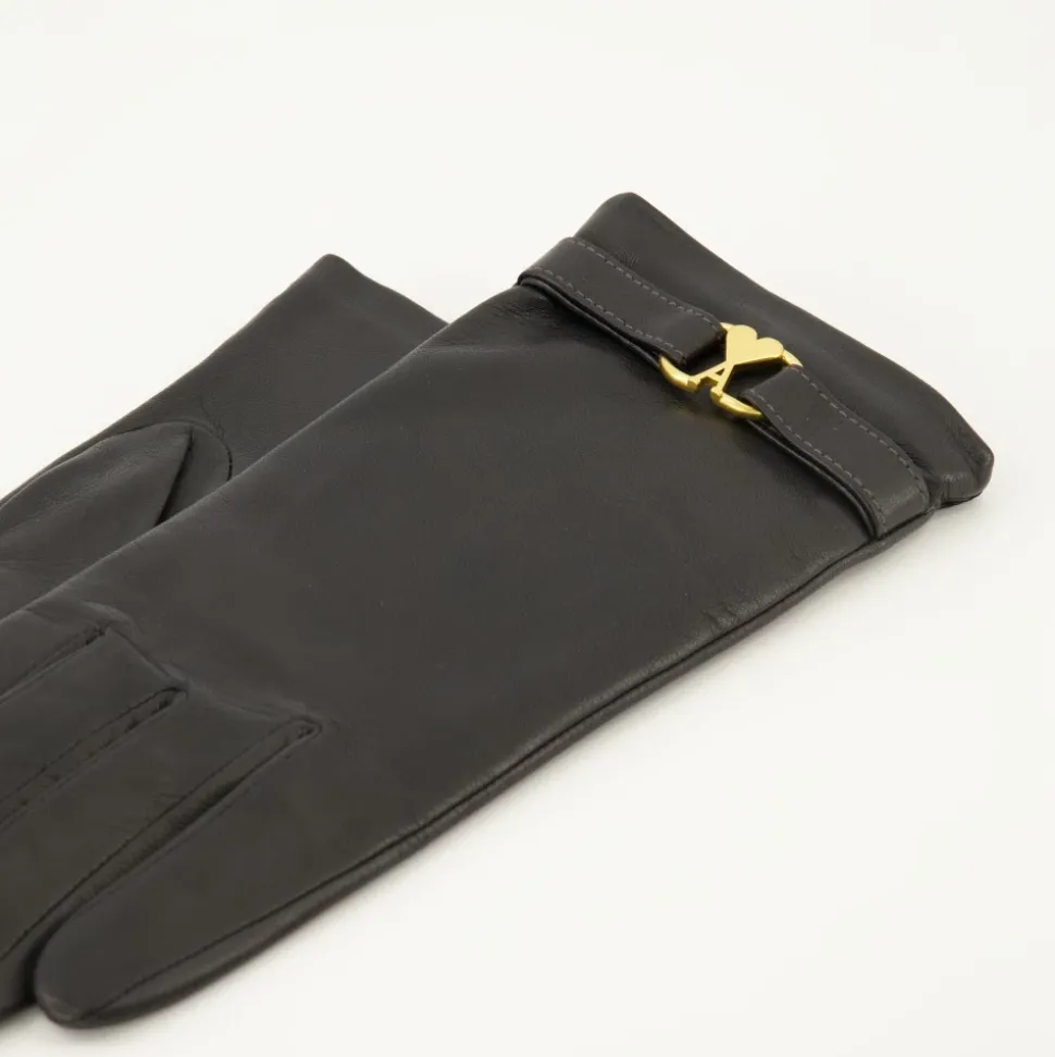 Forhøj din stil med de sorte læder AMI de Coeur handsker fra AMI Paris, et elegant tilbehør til kvinder. En del af efterår-vinter 2025 kollektionen, lavet af lammeskind.