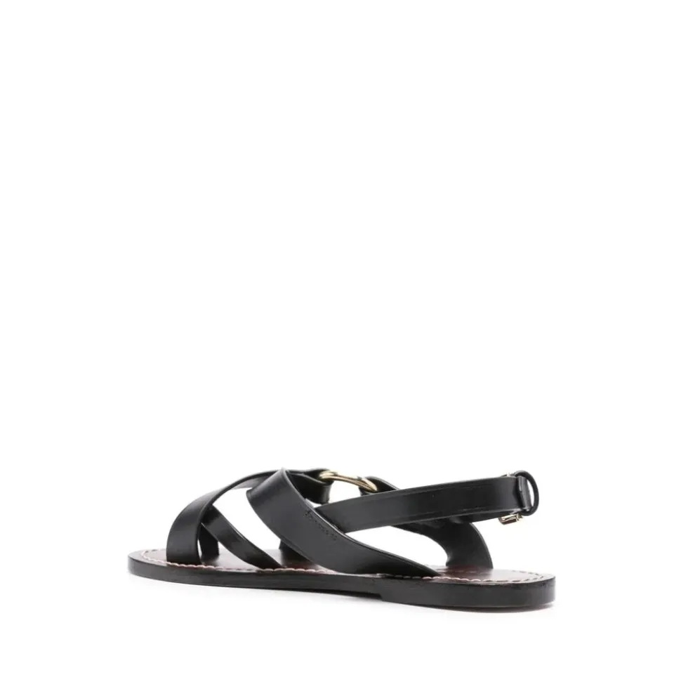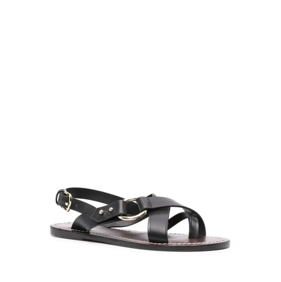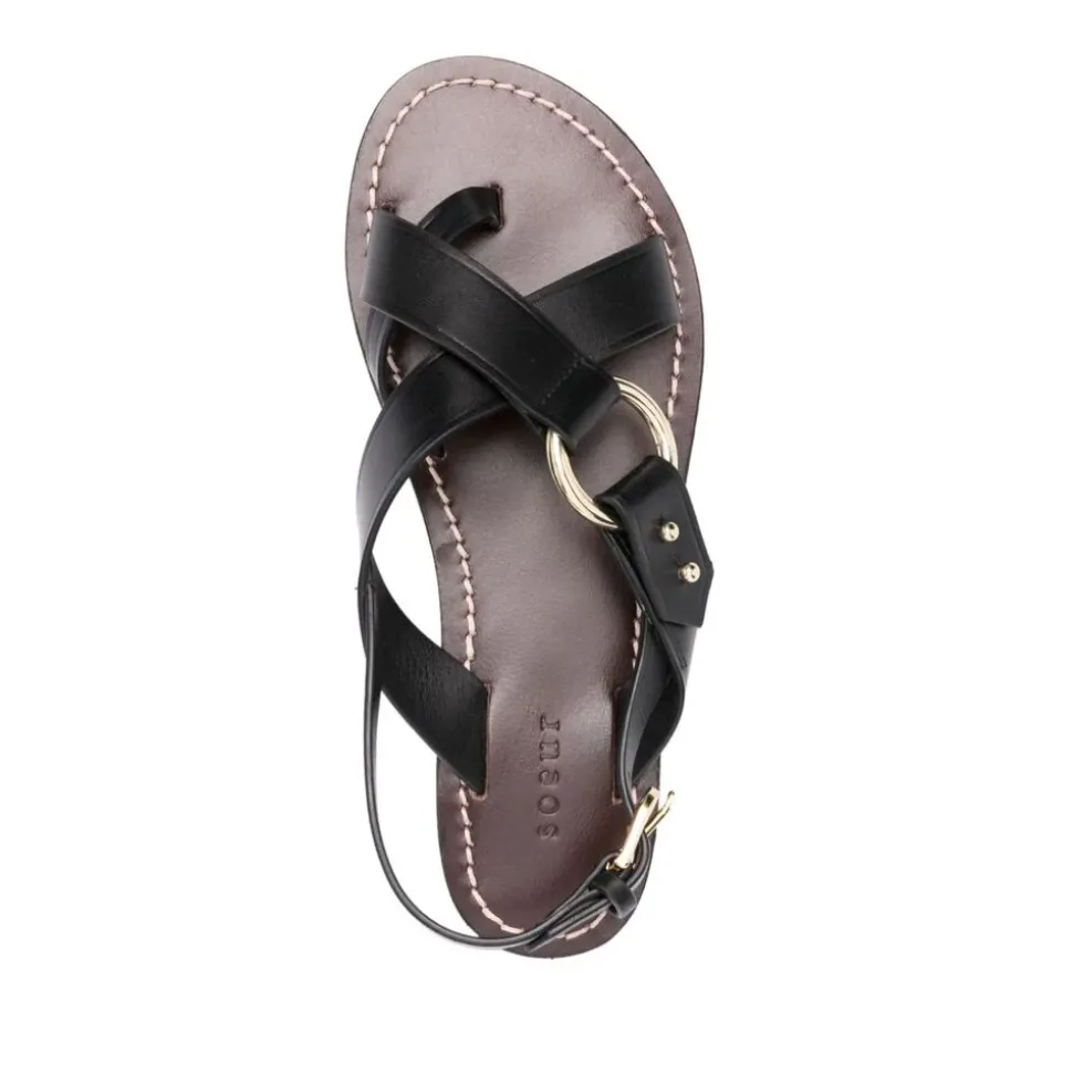 Forkæl dine fødder med disse SOEUR flade sandaler i sort kalveskind. Med en glat kornet tekstur, mandel åben tå, enkelt tårem, krydset rem med tåring pynt og mærket læderindersål. Komplet med lædersål, side spænde lukning og en 1,0 centimeter hæl. Inkluderer en beskyttende støvpose.