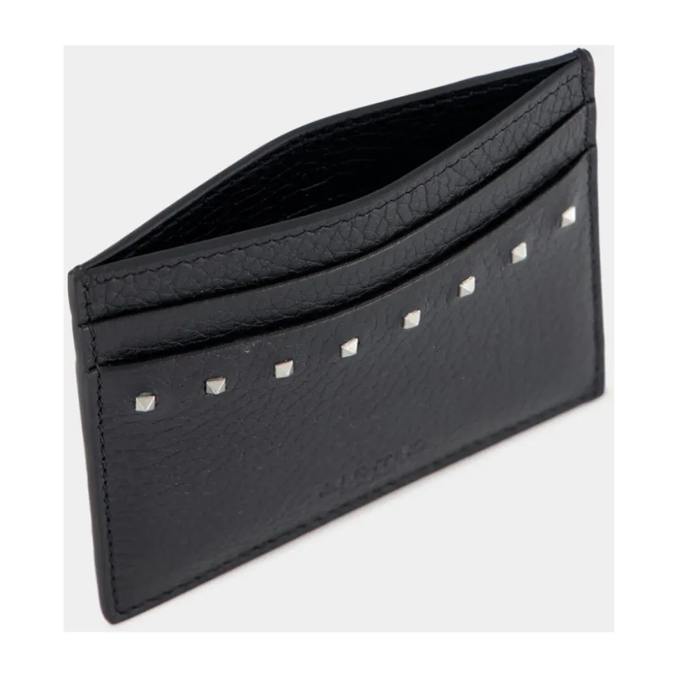 Opgrader dine daglige essentials med Valentino Garavani Rockstud Cardholder i kornet kalveskind. Dette tidløse tilbehør til mænd har signatur antik palladium-finish Rockstud detaljer, fire kortslots og en lomme til nem organisering. Fremstillet i Italien med luksuriøst håndværk er denne kompakte og stilfulde cardholder et must-have. Farve: Sort. Mål: B10 x H8 x D0.5 cm / B3.9 x H3.1 x D0.2 tommer.