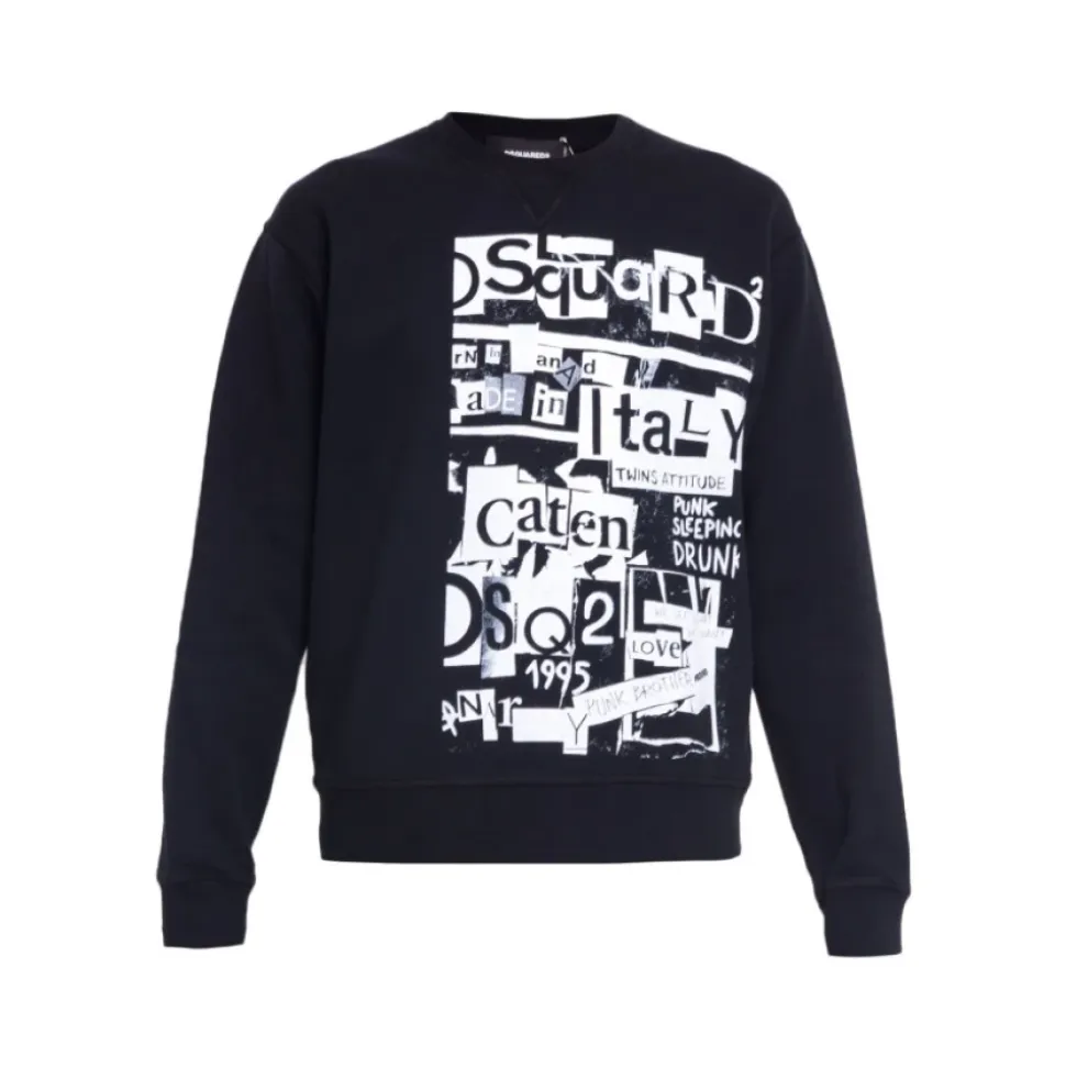 Forkæl din afslappede stil med denne Dsquared2 sweatshirt. Med en sort sweat print, rund hals, lange ærmer og trykt logo er denne sweatshirt med lige snit lavet af 100% bomuld med en blød fleece indvendig. Håndvask anbefales. Tag din sædvanlige størrelse.
