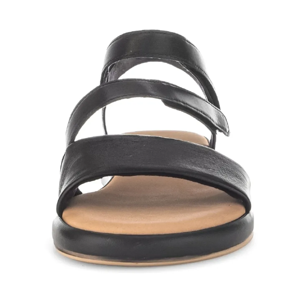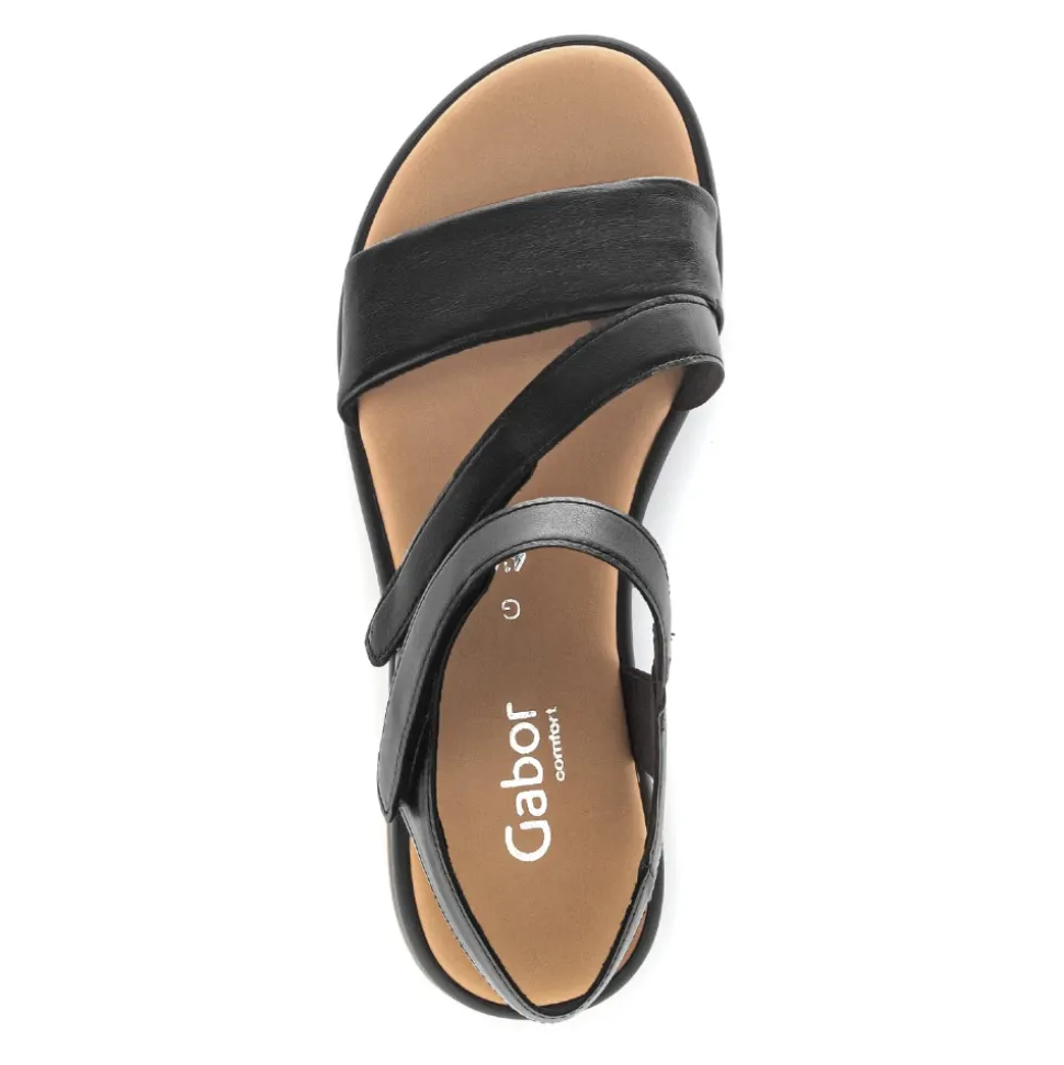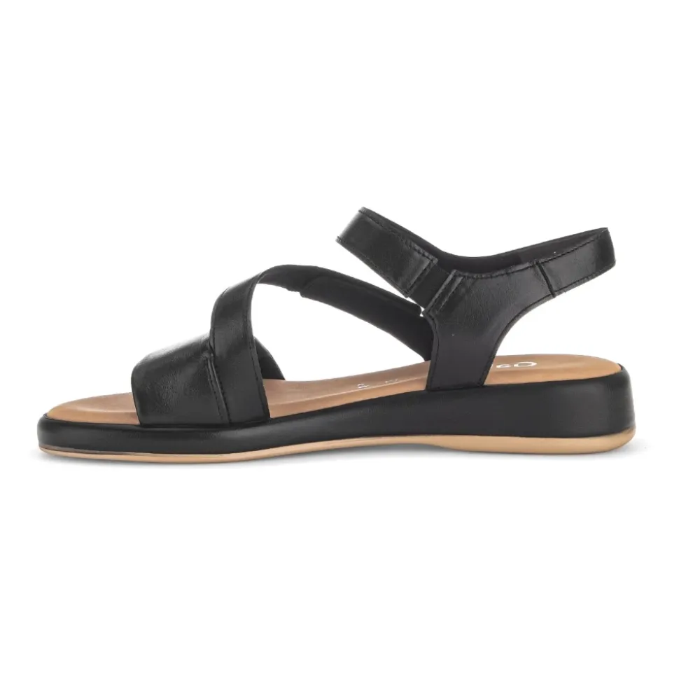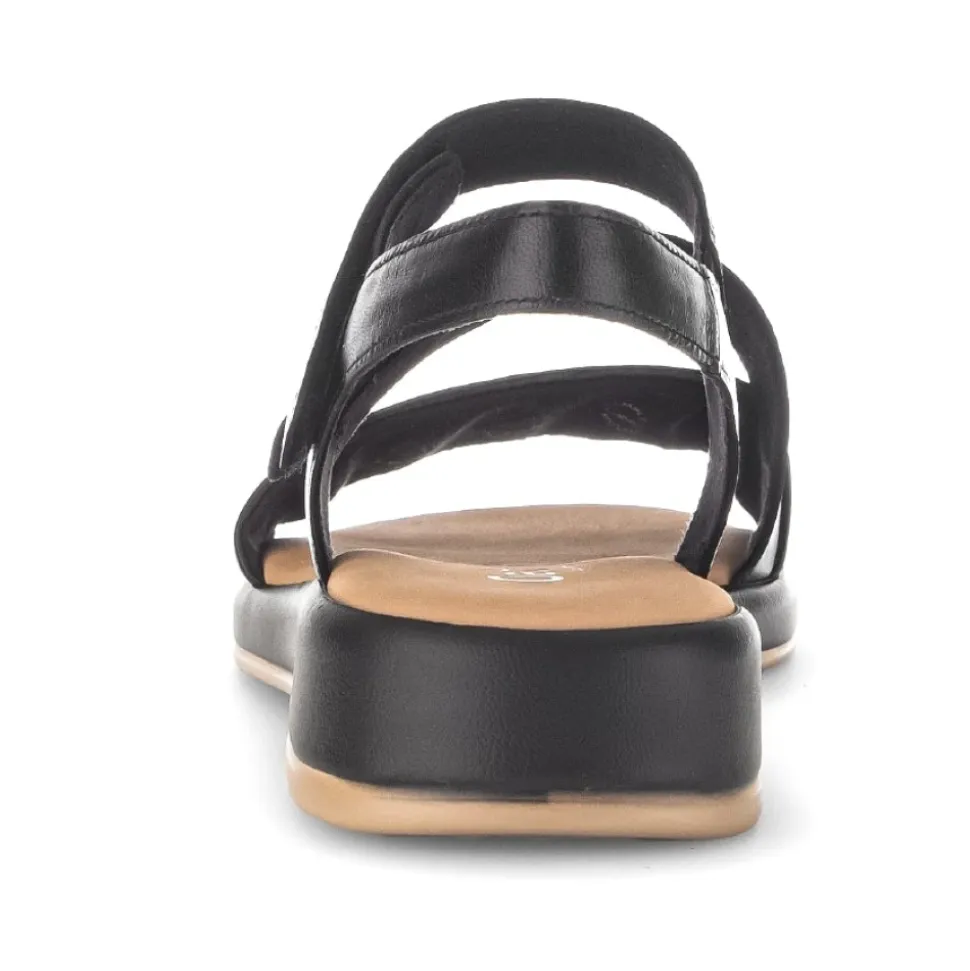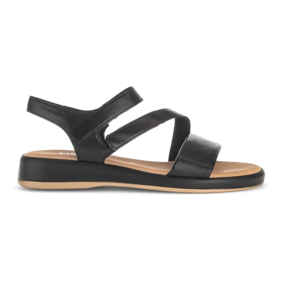 Moderne og behagelig sandal. Med sin ekstra bredde G, sit multi-strop look og sine komfortelastikker sikrer en optimal pasform. Remmene kan justeres med velcro. Den 20 mm kilehæl med dekorativt indlæg er meget behagelig. Lad dig overbevise!