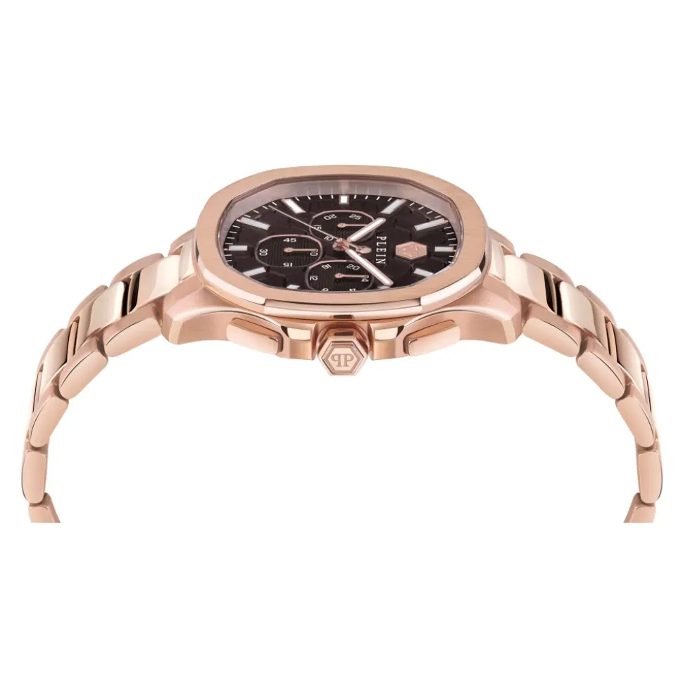 Spectre Chrono Uret fra Philipp Plein er et luksuriøst ur, der kombinerer stil og funktionalitet. Med et markant IP rosaguld urkasse og en brun urskive er dette ur perfekt til dem, der sætter pris på elegance. Produkt detaljer: Brun | Rosaguld | Rustfrit stål | Vandtæt op til 5 ATM | IP rosaguld urkasse | Rosaguld armbånd | Sammensætning og pleje: Rustfrit stål | Aftør med en blød klud.