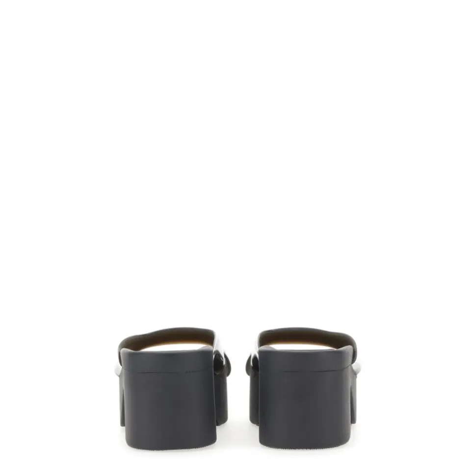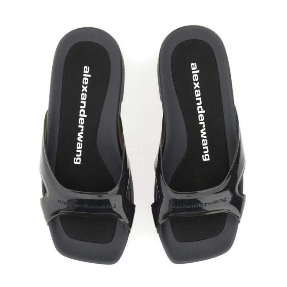Alexander Wang Sport Platform Slide kombinerer en markant platformsilhuet med en gennemsigtig krydsrem for et moderne og iøjnefaldende look. Den chunky hæl og polstrede fodseng giver mærkbar højde, samtidig med at den er behagelig til hverdagsbrug. Vigtige egenskaber: Sort | Termoplastisk polyurethan | Platformssål for ekstra højde | Polstret fodseng for komfort | Slip-on stil | Neopren polstret fodseng | Platform gummi sål | Gennemsigtig krydsrem | Chunky platform hæl | Firkantet tå | Poleret finish | Logo på rem | Dimensioner & pasform: Hælhøjde: ca. 75 mm / 7,62 cm | Platformhøjde: ca. 57 mm / 5,715 cm | Sammensætning & pleje: Overdel: Termoplastisk polyurethan (TPU) | Fodseng/Foring: Neopren | Ydersål: Gummi