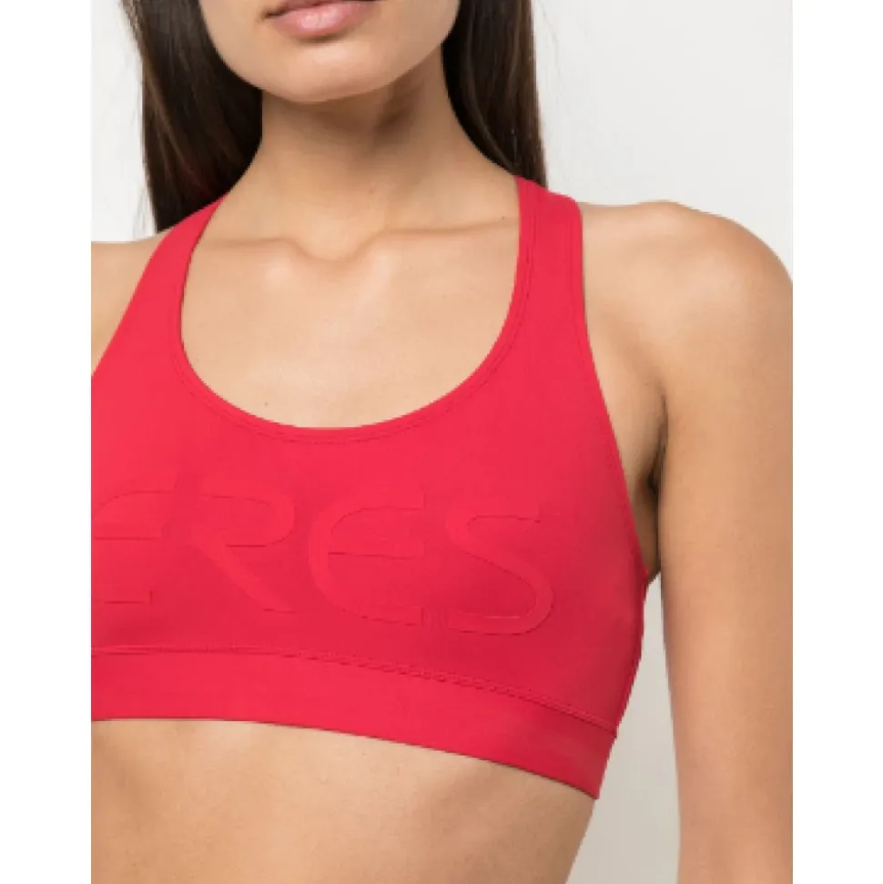 Opnå dine fitnessmål med stil med denne ERES sport bh. Med en scoop halsudskæring, racer ryg, trykt logo på forsiden og en behagelig strækpasform er denne bh med pull-on stil perfekt til dine træningssessioner. Lavet med 77% Spandex/Elastan og 23% Polyamid.