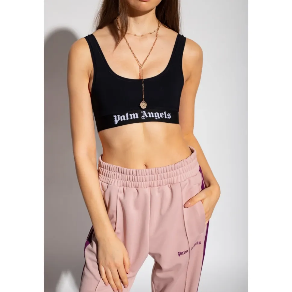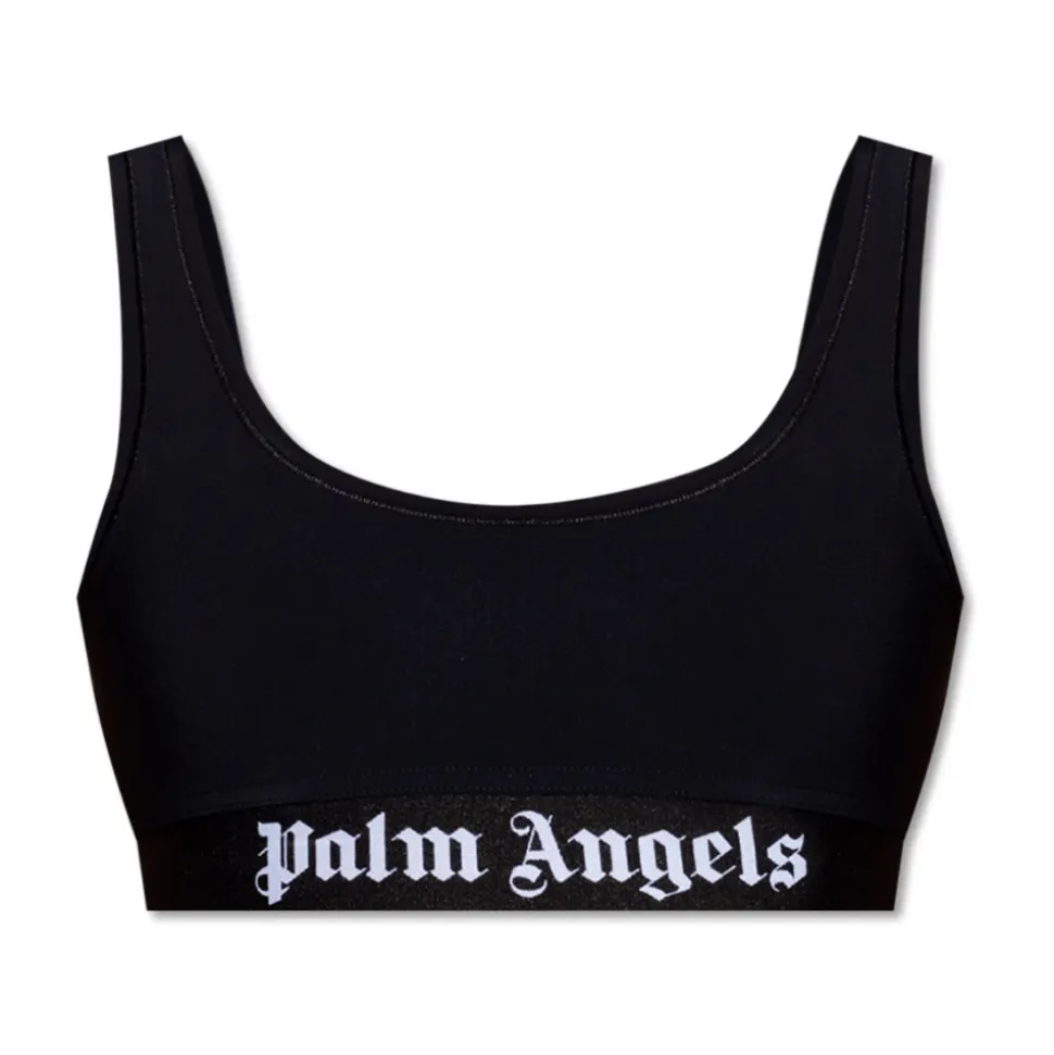 Sort sports top med stropper fra Palm Angels. Denne vare er lavet af elastisk stof og har en elastisk taljebånd med et logo i sort og hvid.