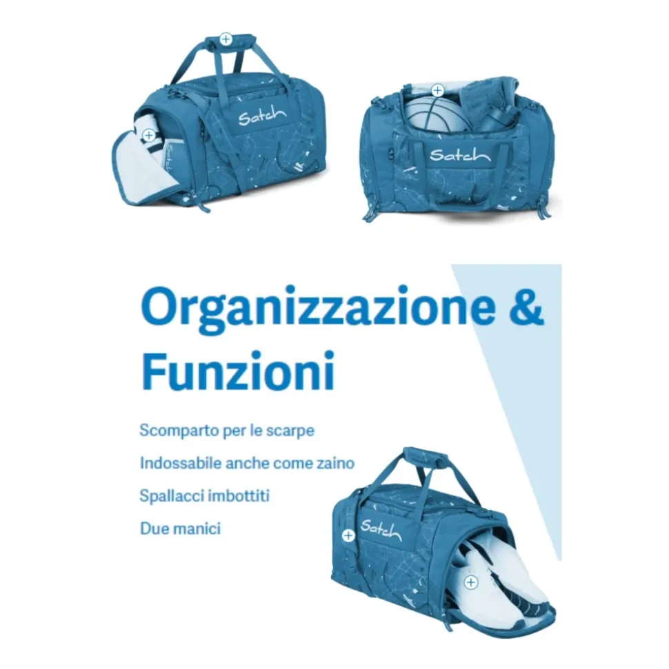 Satch Sportstasken er designet til dem, der er på farten, og tilbyder rigelig plads til sportsudstyr og et praktisk skorum. Produkt detaljer: Blå | Vandafvisende | Smudsafvisende | Kan omdannes til rygsæk | Polstrede skulderstropper | Doble bærehåndtag | Skorum | Kompakt design | Dimensioner og pasform: 45 x 25 x 25 cm | Sammensætning og pleje: Let at rengøre