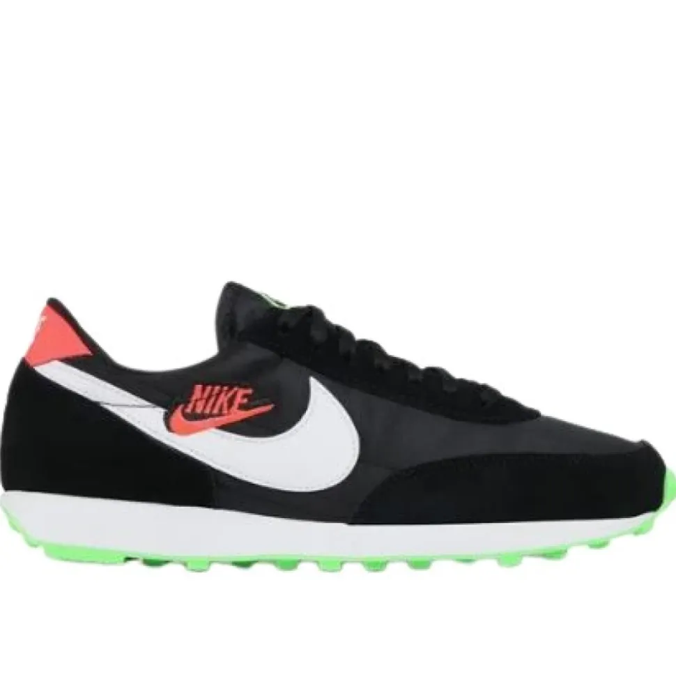 Få et boost til dit holdsports spil med disse Nike sports sko til kvinder. Med et elegant sort design med hvide og grønne accenter, snørelukning, afrundet tå og ingen hæl. Perfekt til daglig sportsaktivitet. Inkluderer stofsnørebånd.