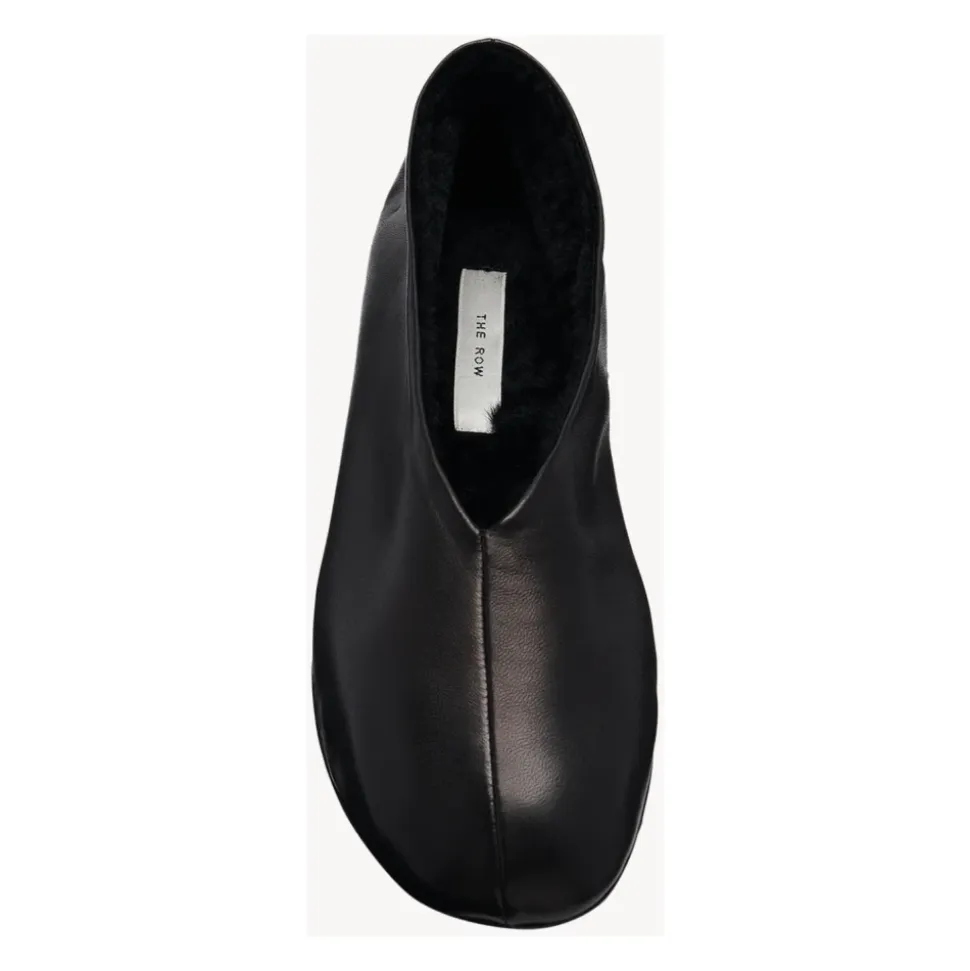 The Row Stella Slipper kombinerer blødt nappa lammeskind med en blød shearling-foring for en let, slip-on flad sko, der er fremstillet i Italien. Dens fleksible gummibelagte sål gør den velegnet til hverdagsbrug både indendørs og udendørs. Nøgleattributter: Sort | Schwarz | Lammeskind | Fleksibel gummibelagt sål | Slip-on | Blød shearling-foring | Oval tå | Glat nappa finish | Sammensætning & pleje: 100% lammeskind | Syntetisk sål