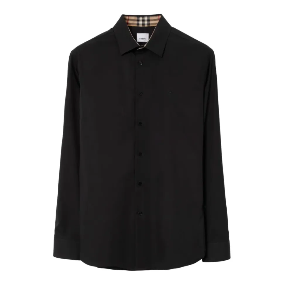 Oplev den tidløse elegance af Burberrys Stilfulde Skjorte, perfekt til afslappede udflugter eller sofistikerede sammenkomster. Produkt detaljer: Sort | Bomuld | Åndbart stof | Knaplukning | Klassisk krave | Lange ærmer | Dimensioner og pasform: Regular fit | Sammensætning og pleje: 100% bomuld | Maskinvask kold, tørretumbles ved lav varme.