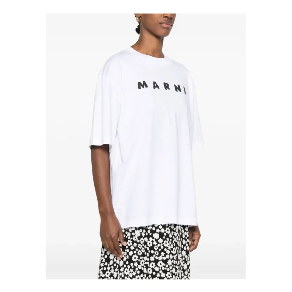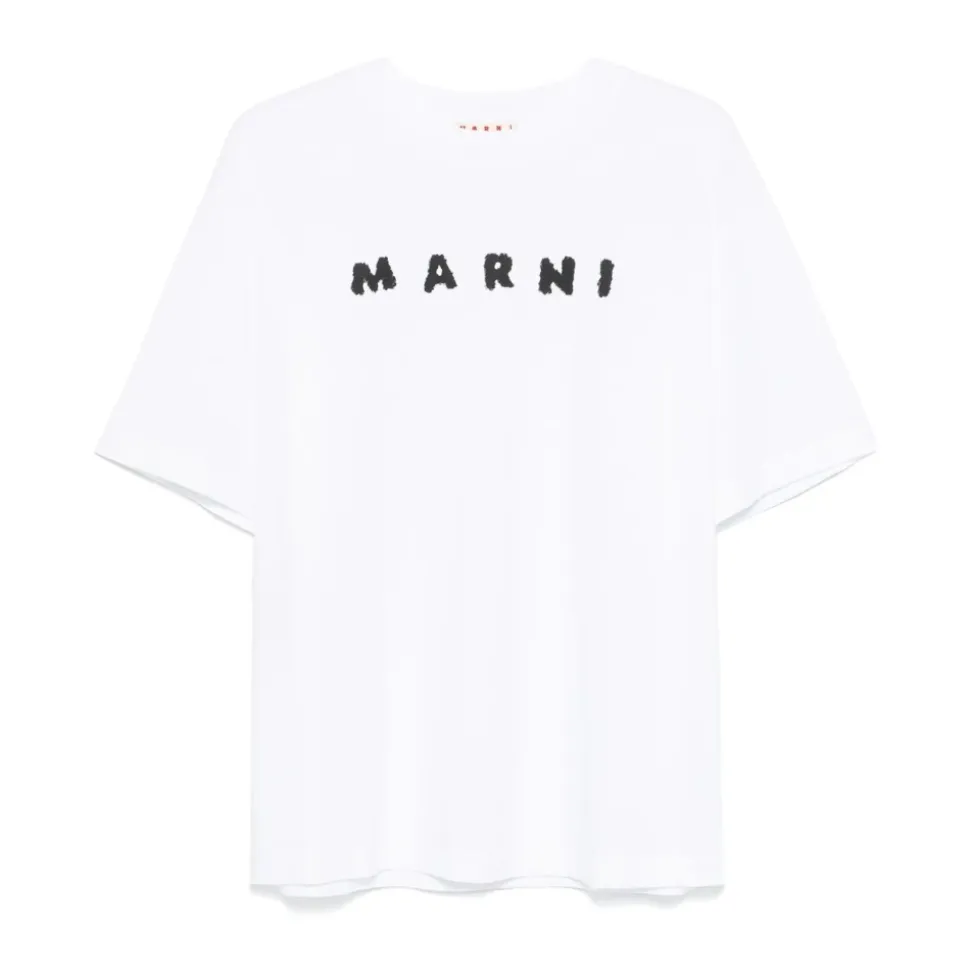 Opgrader dit afslappede look med denne Marni T-shirt, fremstillet af 100% bomuld for ultimativ komfort og stil. Perfekt til hverdagsbrug, denne T-shirt kombinerer enkelthed med elegance. Produkt detaljer: Hvid | 100% Bomuld | Rund hals | Korte ærmer | Dimensioner og pasform: Regular fit | Sammensætning og pleje: 100% Bomuld | Maskinvask kold, tørretumbles ved lav varme.