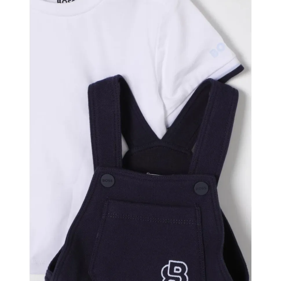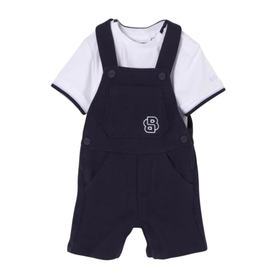 Klæd din lille i stil med Hugo Boss Romper Kids Navy. Denne høj kvalitets romper i en alsidig marineblå farve er perfekt til enhver lejlighed og tilbyder både mode og komfort. Lavet af en blød bomuldsblanding, har romperen et klassisk design med mørkeblå overalls og en hvid skjorte.
