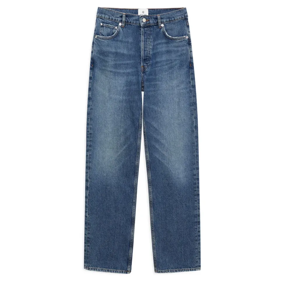 Anine Bing Straight Jeans i et klassisk straight-leg snit, afsluttet med subtile falmede områder, der skaber et vintage look. Disse jeans er designet til hverdagsbrug og kombinerer en ren silhuet med slidte detaljer. Vigtigste egenskaber: Blue | Blå | Bomuld | Straight leg | Subtile falmede detaljer for et vintage look | Mål & pasform: Regular fit | Sammensætning & pleje: 100% Bomuld | Maskinvask ved 30°C på et skånsomt program.