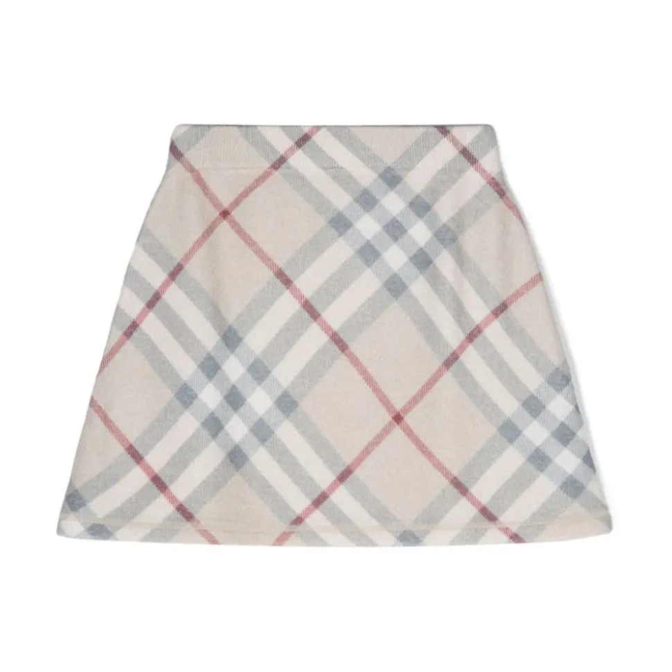 Løft stilen med Burberrys strikkede skørt med tern, der har et klassisk ternet design og ribdetaljer for et tidløst look. Produkt detaljer: Elfenbenshvid | Grå | Rød | Uld | Elastisk linning | Ribdetaljer | A-linje lige søm | Sammensætning og pleje: 100% uld | Renseri anbefales