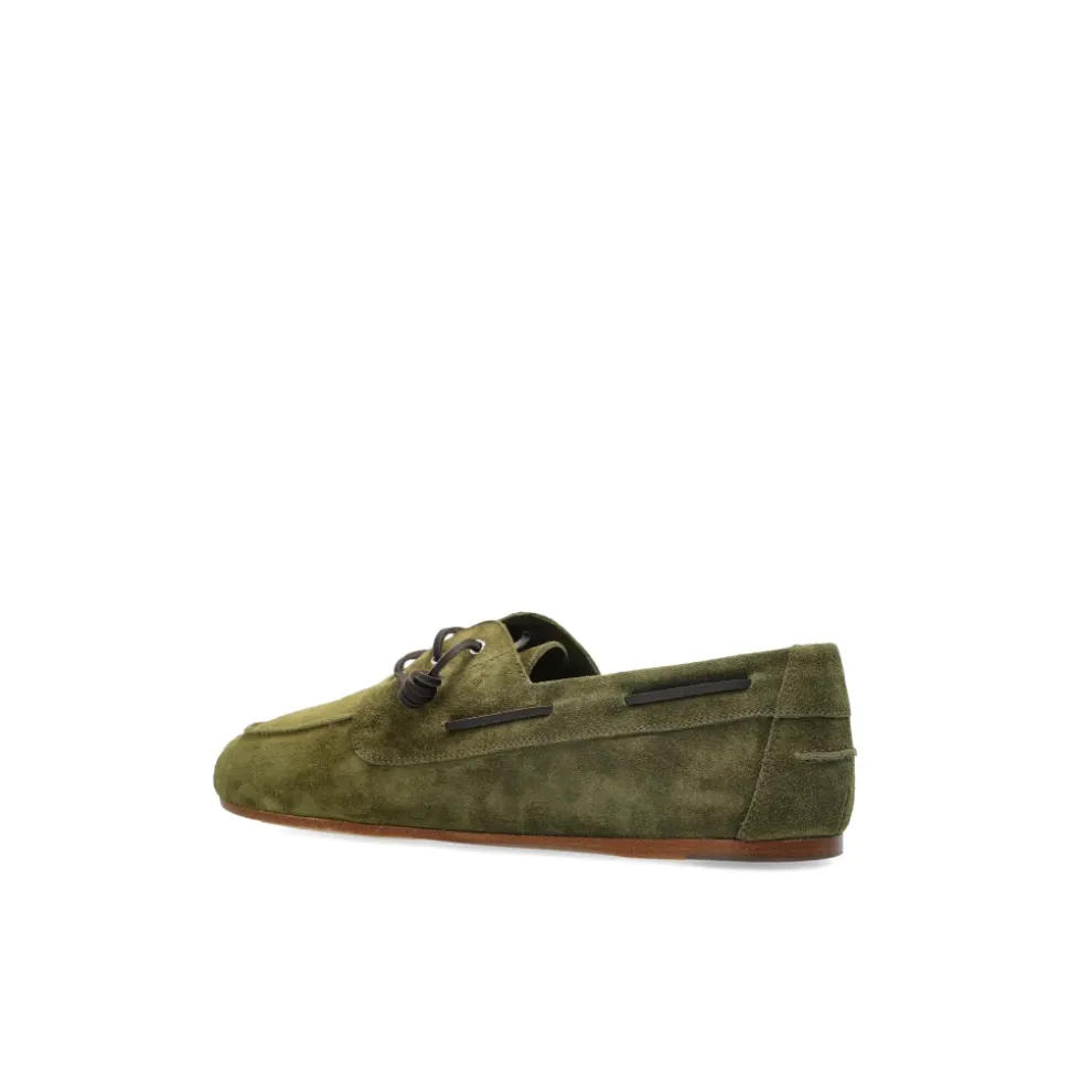 Dsquared2 Suede Sko kombinerer en klassisk loafer-silhuet med snørebånd og førsteklasses ruskind, hvilket giver en raffineret sko til hverdagsbrug. Det ensfarvede grønne ruskind og de subtile detaljer skaber et poleret og alsidigt look. Vigtige egenskaber: Grøn | Ruskind | Snørelukning | Metaløjer | Brandet indersål | Lav overdel | Langstrakt, rund tå | Subtile stikninger | Kontrastfarvede snørebånd | Læderkant på kanterne | Interiør DSQUARED2 logo | Mål og pasform: Sålhøjde: 1 cm | Sammensætning og pleje: Ydre: Ruskind 100% | For: Tekstil 100% | Sål: Gummi 100%