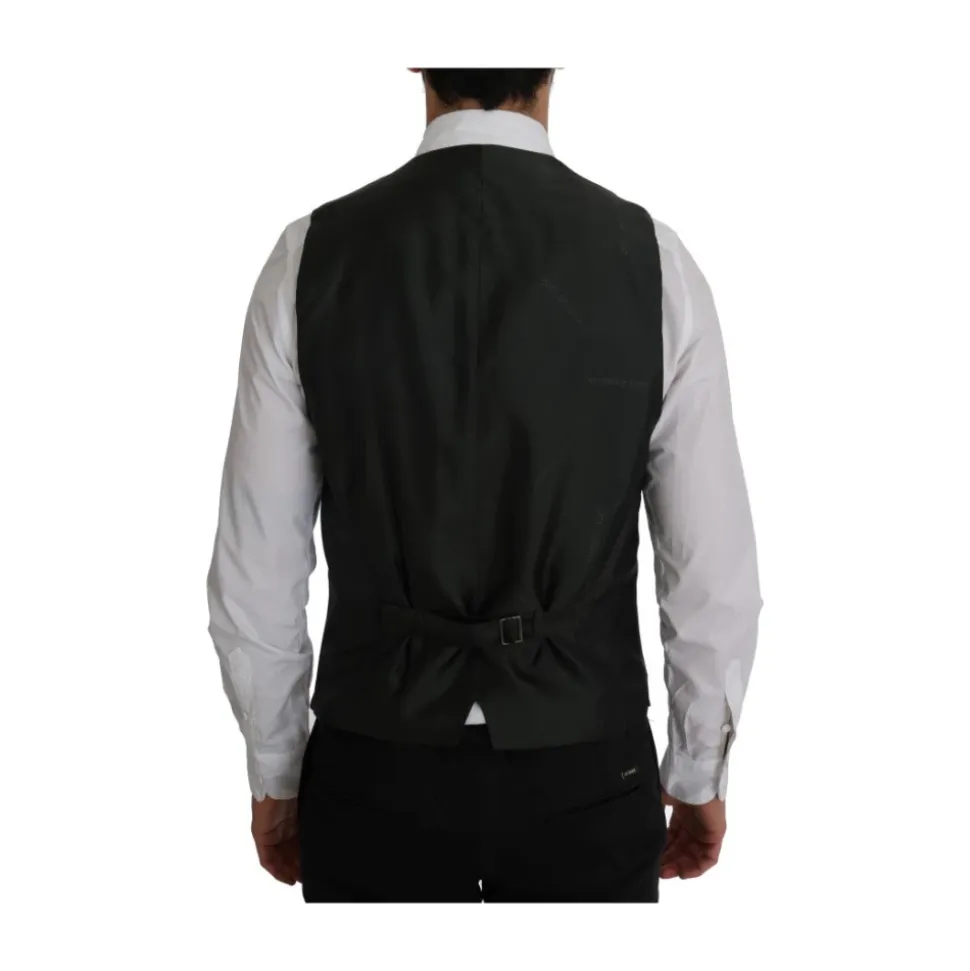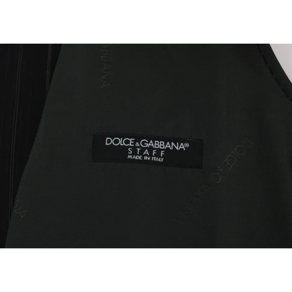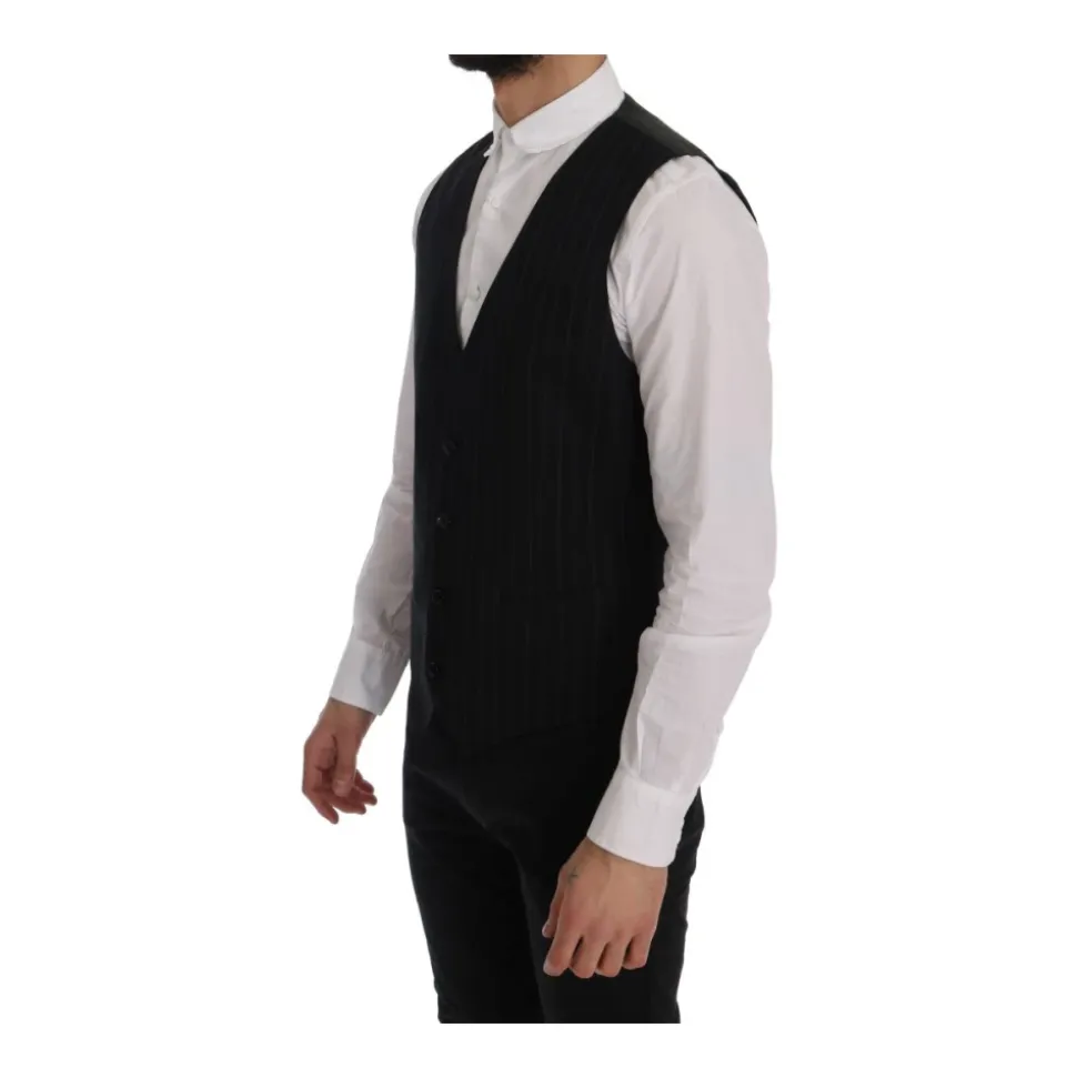 Forhøj din stil med denne Dolce & Gabbana vest til mænd. Med sit elegante enkeltknap design, klassiske sorte striber og fuld knaplukning er denne vest et symbol på sofistikeret stil. Fremstillet af 80% bomuld og 20% viskose, tilbyder den en behagelig pasform med en justerbar rygstrop. Håndlavet i Italien med enestående opmærksomhed på detaljer, er denne vest et tidløst tilføjelse til din garderobe.