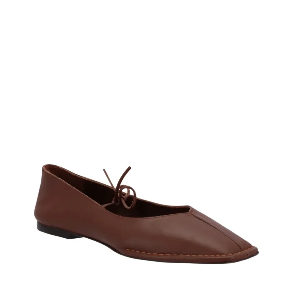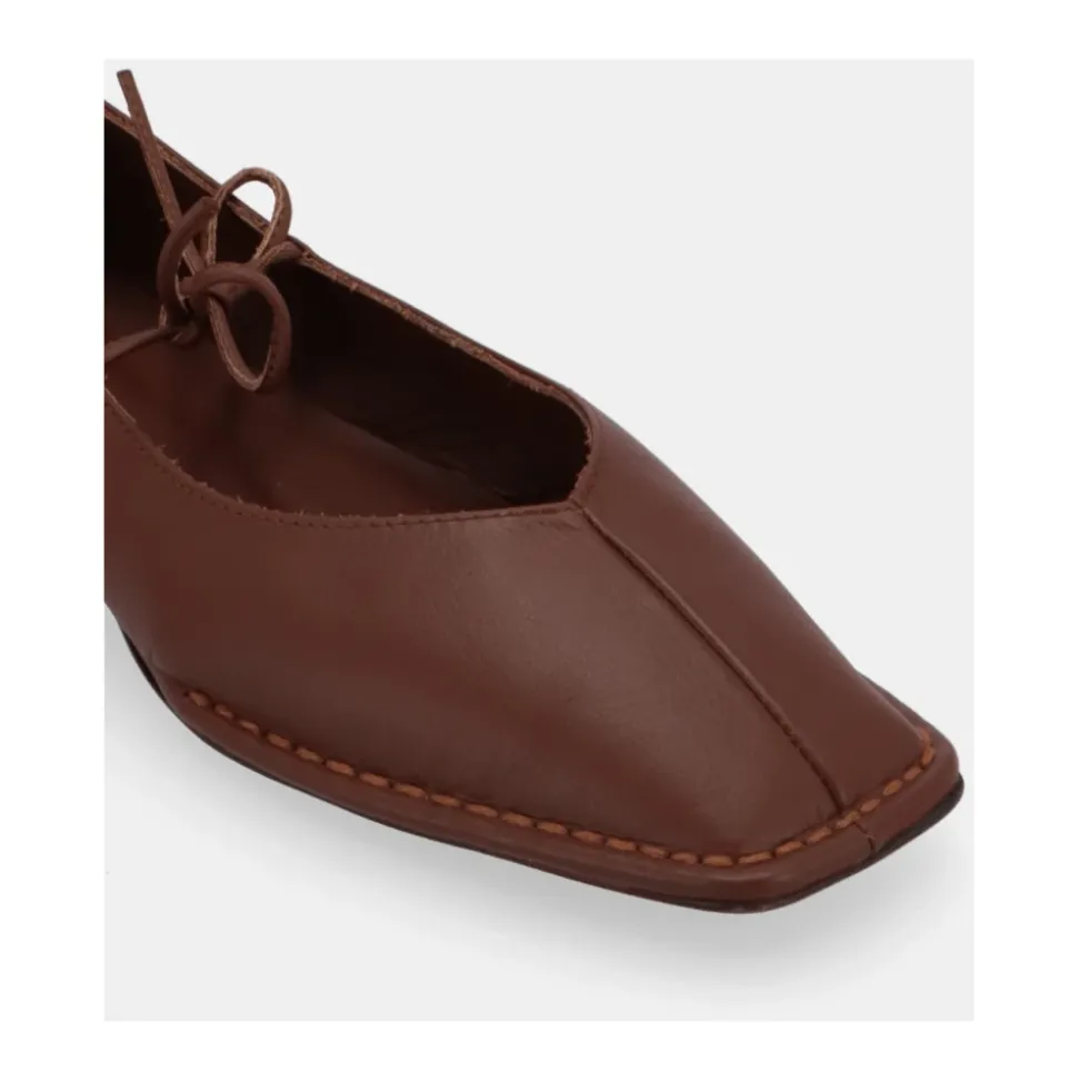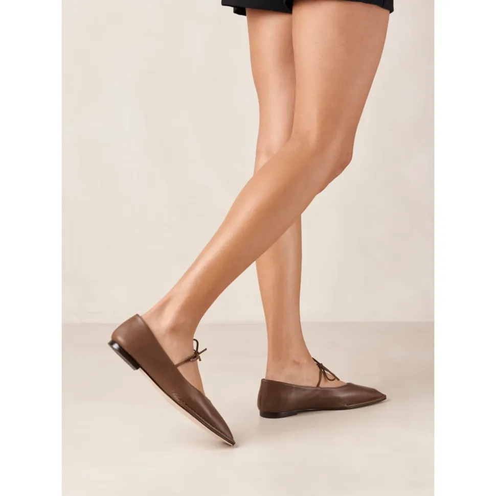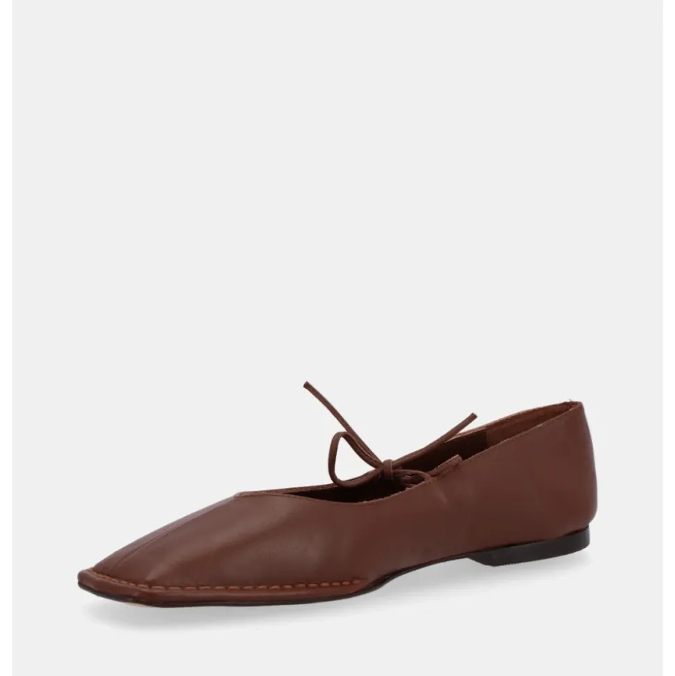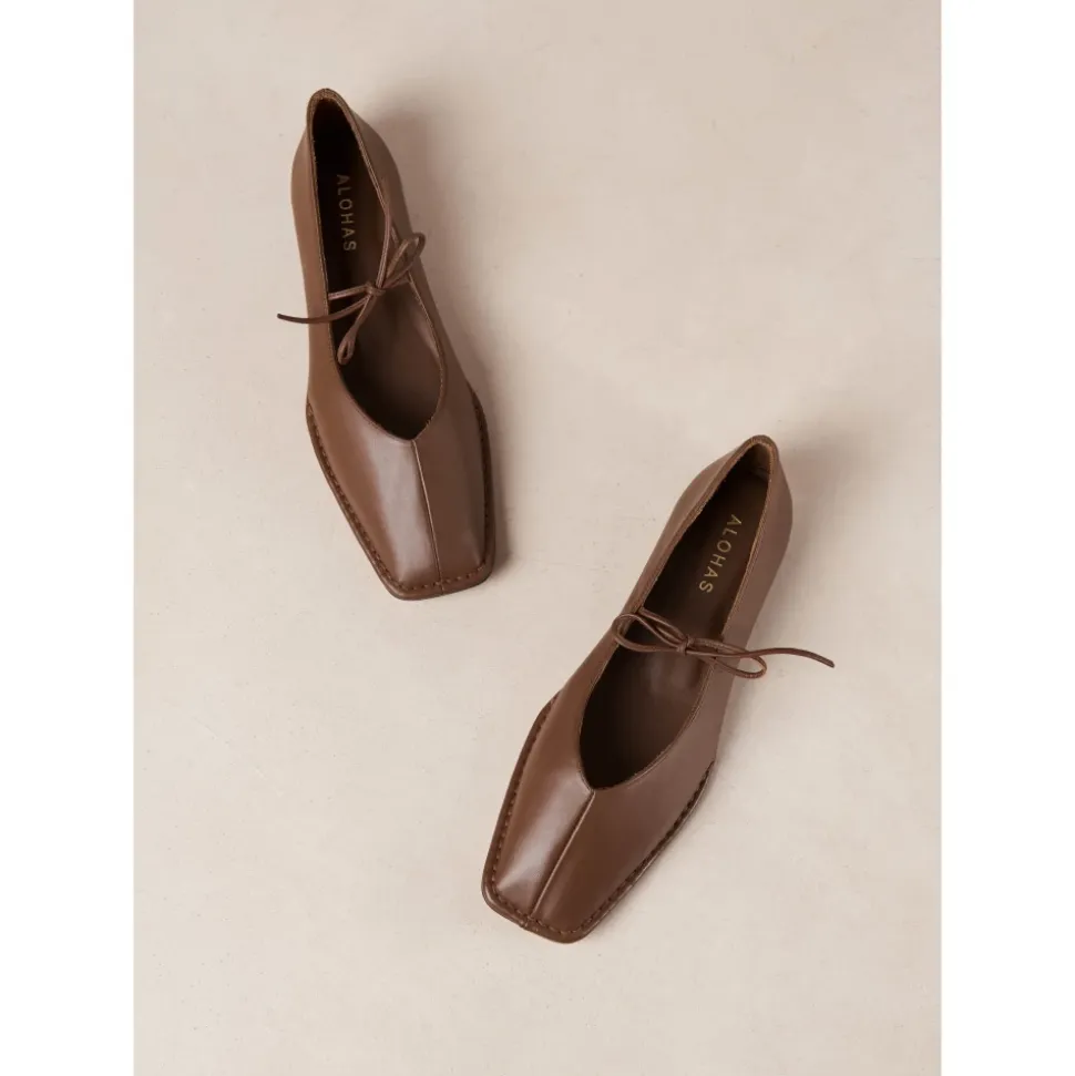 Oplev ALOHAS Sway ballerina-sko i læder, designet til komfort og stil med deres fleksible ydersål og elegante sløjfedetalje. Perfekte til et par afskårne jeans og en frisk hvid skjorte. Produkt detaljer: Kastaniebrun | Læder | Spids tå | Fin sløjfe | Dimensioner og pasform: Størrelsesrigtig | Hvis du er imellem to størrelser, vælg den mindre | Sammensætning og pleje: 100% Kødkvægslæder | 100% Cuerolite | Ikke specificeret