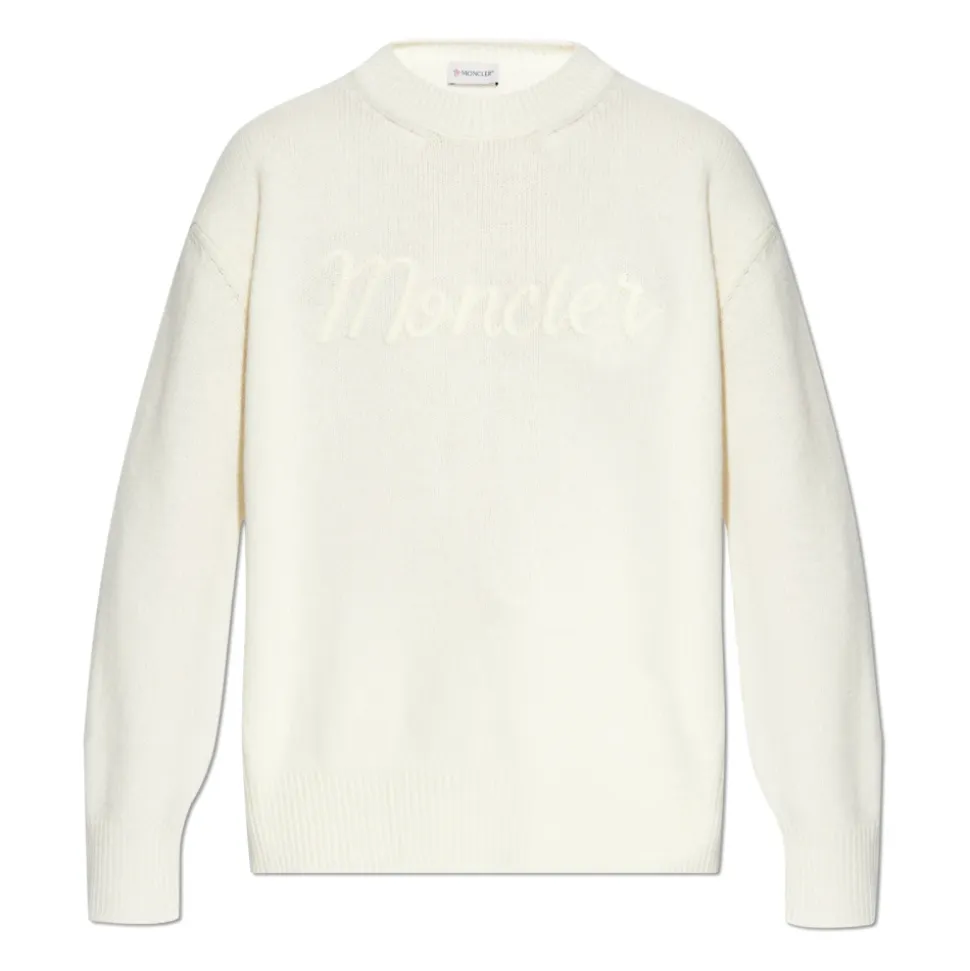 Vi præsenterer Moncler`s sweater med broderet logo, en luksuriøs blanding af uld og cashmere, der udstråler elegance og raffineret smag. Dens cremefarvede nuance integreres problemfrit i enhver garderobe og tilbyder både stil og varme. Produkt detaljer: Creme | Beige | 90% Uld | 10% Cashmere | Rund halsudskæring | Lange ærmer | Broderet logo på brystet | Dimensioner og pasform: Løs pasform | Sammensætning og pleje: 90% Uld | 10% Cashmere | Renseri anbefales