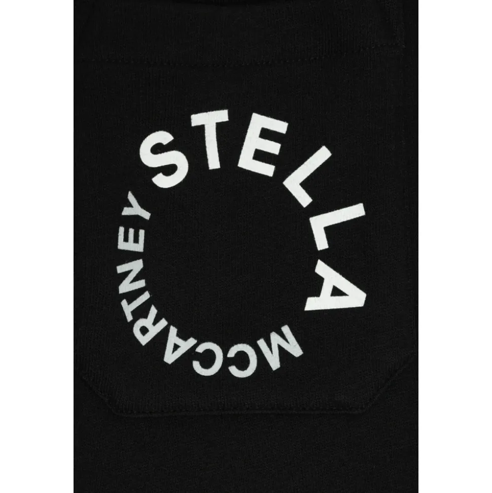 Vi præsenterer elegante sweatpants fra den eksklusive Stella McCartney kollektion. Disse sweatpants er fremstillet af bomuld af høj kvalitet og tilbyder en blanding af klassisk stil og komfort. Produkt detaljer: Sort | Bomuld | Elastisk linning | Tre lommer | Bred elastisk linning | Manchetter på benene | Hvidt `Stella McCartney` logo i en cirkel | Dimensioner og pasform: Fremragende pasform til silhuetten | Sammensætning og pleje: 100% bomuld | Maskinvask kold, tørretumbles ved lav varme