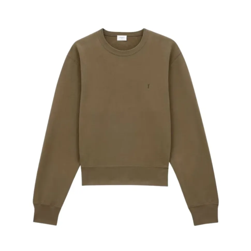 Saint Laurent Sweatshirt er en bomuldssweatshirt med rund hals, designet til et løftet hverdagslook. Den kombinerer en afslappet silhuet med ribkanter for alsidig og komfortabel lag-på-lag. Vigtigste egenskaber: Grøn | Pesto | Bomuld | Rund hals | Lange ærmer | Afslappede skuldre | Stretchmanchetter | Stretchkant | Ensfarvet | Mål og pasform: Regular fit | Sammensætning og pleje: 100% bomuld