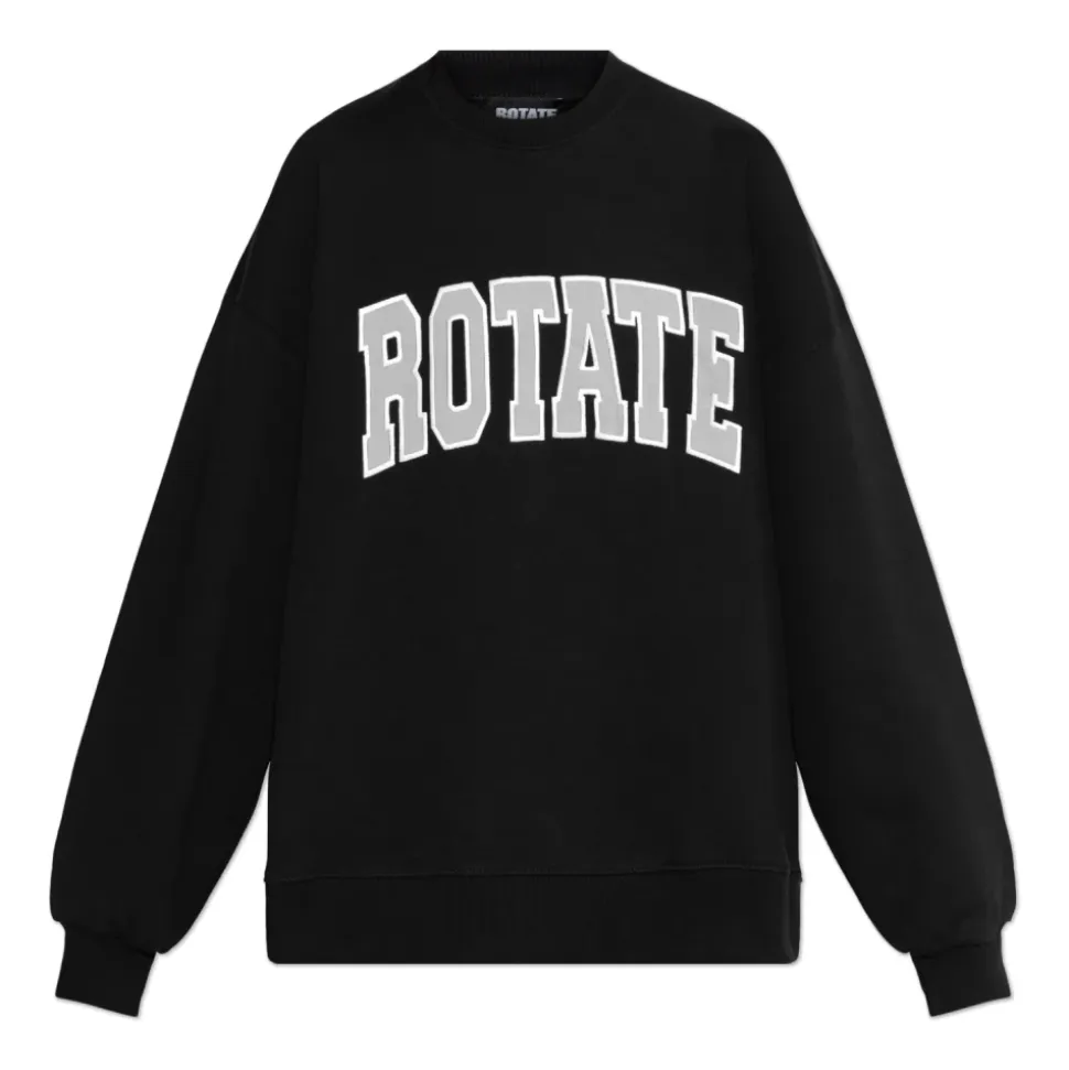 Introduktion af SWEATSHIRT MED LOGO fra det eksklusive brand ROTATE, forankret i København. Denne sorte sweatshirt, lavet af den højeste kvalitet bomuld, kombinerer en klassisk, løs pasform med moderne accenter. Lange ærmer og en rund halsudskæring sikrer komfort, mens den store