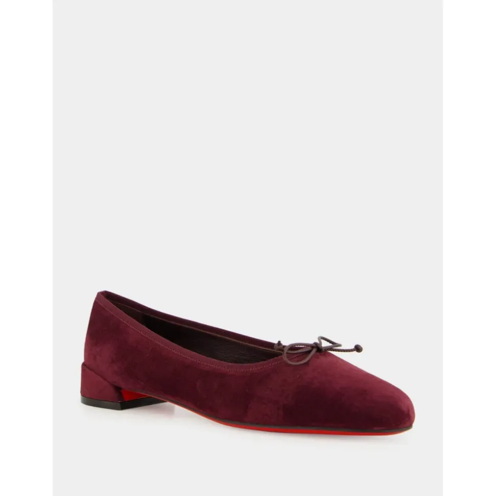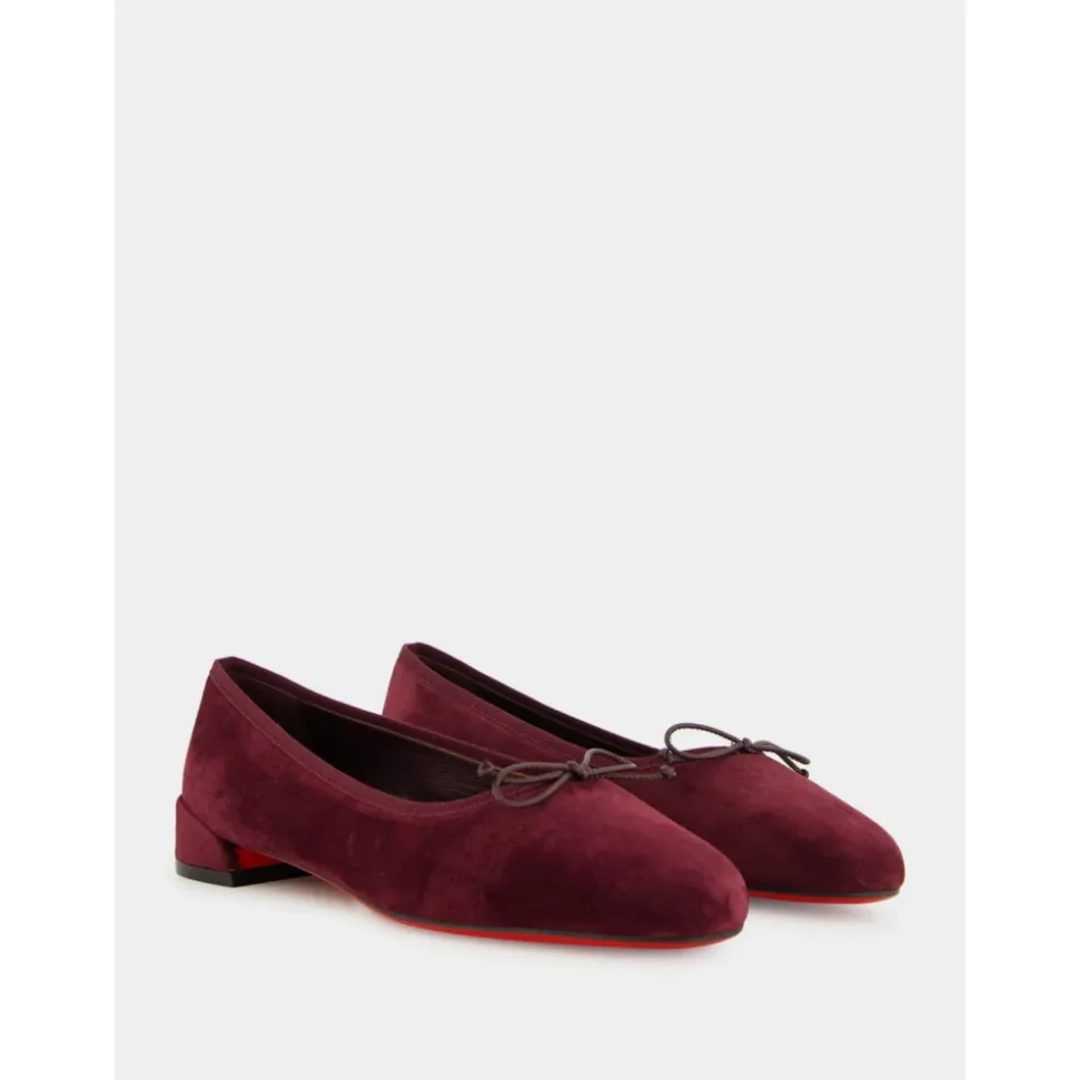 Christian Louboutin Sweetie Jane Ballerinaer kombinerer en tidløs balletsko-silhuet med parisisk elegance, med en fin sløjfe foran og mærkets signatur Everlasting Red-sål for varig glød. Nøgleattributter: Rød | Amara Burgundy | Veau velours | ‘Everlasting Red’-belagt sål for varig glød og modstand | Slip-on-stil | Sløjfe foran | Rund tå | Lav balletsko-silhuet | Signatur rød sål | Dimensioner og pasform: Normal i størrelsen | Sammensætning og pleje: Veau Velours | Speciallæderrens.