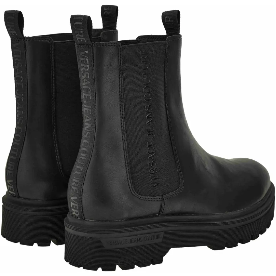 Versace Syrius Chelsea Boots kombinerer en glat, coated finish med en let slip-on konstruktion. De har tone-i-tone Institutional branding og en profileret gummisål for godt greb hver dag. Vigtige egenskaber: Sort | Polyuretan | Slip-on med elastiske sidepaneler | Profileret gummisål | Tone-i-tone Institutional logo på elastiske sidepaneler | Coated finish | Trækstropper | Sammensætning & pleje: Ydermateriale: 75% polyuretan, 25% elastan | Sål: gummi | Følg vaskeanvisningen på produktet. For detaljerede plejeråd, se Versace Care Guide eller et specialiseret renseri.
