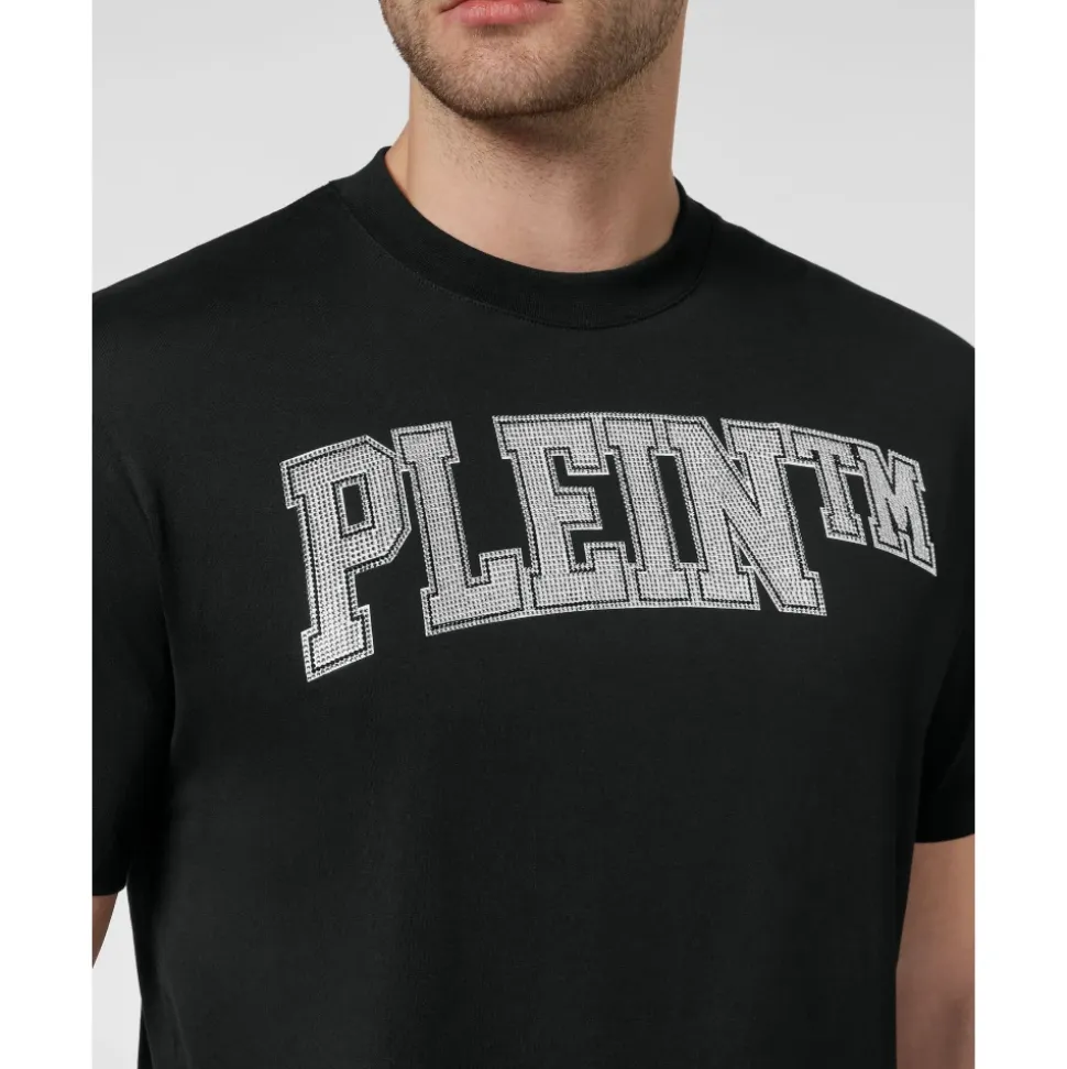 Philipp Plein T-shirt Round Neck SS with Crystals opdaterer en bomuldsjersey-rundhals med et rhinestone-glitrende Brand-print og et saffianlæder PP Hexagon-mærke for et markant casual look. Nøgleattributter: Sort | Hvid | Bomuld | Komfortabel, åndbar bomuldsjersey | Rund (crew) halsudskæring | Korte ærmer | Rhinestone-besat Brand-print | Saffianlæder PP Hexagon-mærke på bærestykket | Dobbeltsyede kanter | Sammensætning & pleje: 100% bomuld | Trimning: 100% glasfiber | Saffianlæder (mærke)