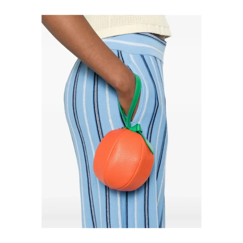 Hereu Taronja Purse er en citrusformet mini taske fremstillet af kornet kalveskind, designet til at rumme mønter og småting. Den udmærker sig ved sit knyttede tophåndtag og sikre lynlåslukning. Vigtigste egenskaber: Orange | Kalveskind | Toplynlåslukning | Beskyttende støvpose medfølger | Kornet tekstur | Knudedetalje | Rund, orange-formet silhuet | Tophåndtag | Mål & pasform: Bredde: 10,0 centimeter | Dybde: 10,0 centimeter | Højde: 11,0 centimeter | Håndtag: 13,0 centimeter | Sammensætning & pleje: Kalveskind | Foring: 100% bomuld | Aftør med en blød klud; brug læderrens til pletter; undgå langvarig udsættelse for vand og stærke kemikalier.