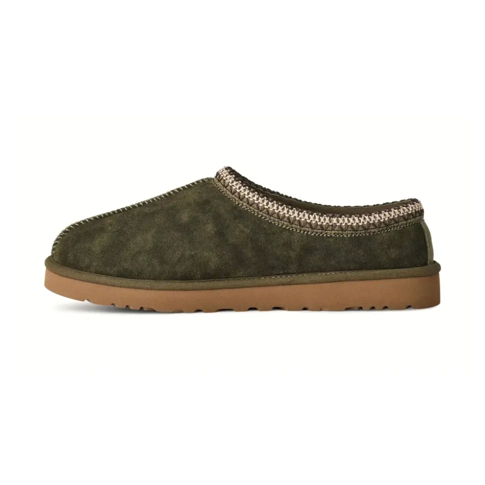 UGG Tasman Baxter Slippers kombinerer en overdel i ruskind med blødt 17 mm UGGplush-for for komfortabel brug både indendørs og udendørs. Designet kombinerer en blød skumsål med en skridsikker EVA/Treadlite-ydersål for hverdags komfort. Vigtige egenskaber: Brændt oliven | Ruskind | Velegnet til indendørs og udendørs brug | Let, holdbar EVA/Treadlite-ydersål for godt greb | 17 mm UGGplush-for og -indersål | Skumsål | Sugarcane EVA eller Treadlite by UGG™ EVA-ydersål | Overdel i ruskind | Flettet kant | Varme-præget UGG-logo | Dimensioner og pasform: Hælhøjde: 3,175 cm | Normal i størrelsen | Sammensætning og pleje: Overdel i ruskind | UGGbraid: 100% polyester | For: 17 mm UGGplush™ (60% uld, 40% TENCEL™ Lyocell, 100% polyester bagside) | Indersål: 17 mm UGGplush™ (60% uld, 40% TENCEL™ Lyocell) | Skumsål | Sugarcane EVA-ydersål eller Treadlite by UGG™ EVA-ydersål | Polyesterkant.UGGs føles tætte i starten, men foret giver sig med tiden. Vi anbefaler din normale størrelse.