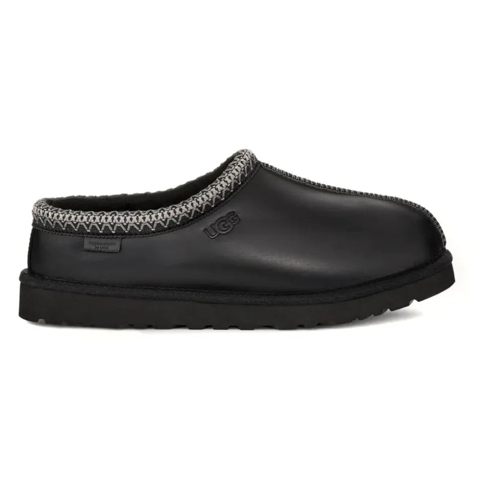 UGG Tasman Leather Regenerate hjemmesko kombinerer en læderoverdel med blødt UGGplush™-for for en nem slip-on-stil, der fungerer både indendørs og udendørs. Vigtige egenskaber: Sort | Læder | UGGplush™-for for varme | Sugarcane EVA-ydersål | Nem slip-on-silhuet | Skumfodseng for stødabsorbering | UGGplush™-indersål | Uggbraid-trim | Tekstilbinding | Varme-præget UGG-logo | Sammensætning pleje: Læder (overdel) | Uggbraid: 100% polyester | Foring: 17 mm UGGplush™ (60% uld, 40% TENCEL™ Lyocell) | Indersål: 17 mm UGGplush™ (60% uld, 40% TENCEL™ Lyocell) | Skumfodseng | Sugarcane EVA-ydersål | Tekstilbinding: 100% polyester.UGGs føles tætte i starten, men foret giver sig med tiden. Vi anbefaler din normale størrelse.