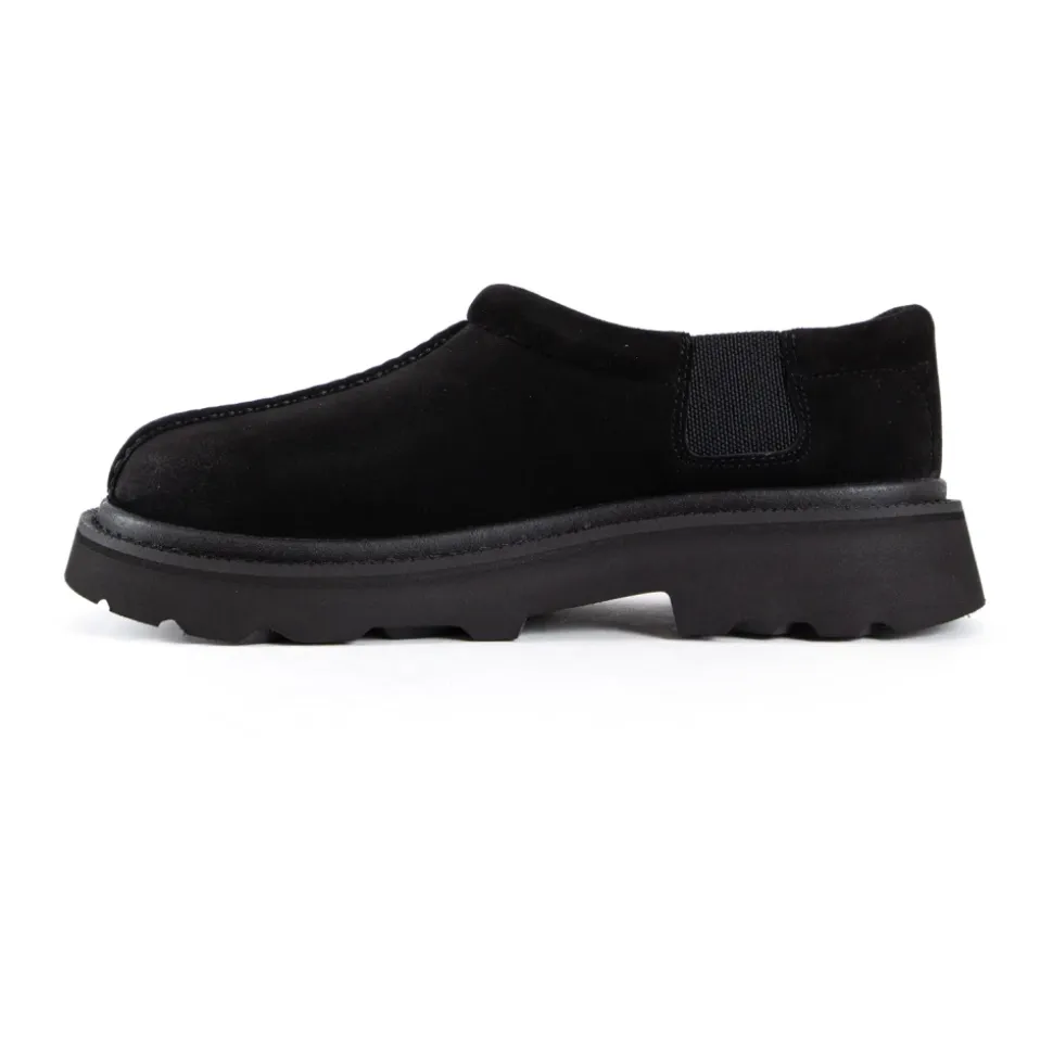 Træd ind i komfort med UGG Tasman Lug Slipper, designet til at holde dig varm og stilfuld i de koldere måneder. Disse sorte ruskindssko har et karakteristisk præget logo og en slidstærk EVA-sål til hverdagsbrug. Produkt detaljer: Sort | Ruskind | Pebermyntebaseret anti-lugt behandling | Udskiftelige indlægssåler | Præget logo | Blokhæl |.UGGs føles tætte i starten, men foret giver sig med tiden. Vi anbefaler din normale størrelse.