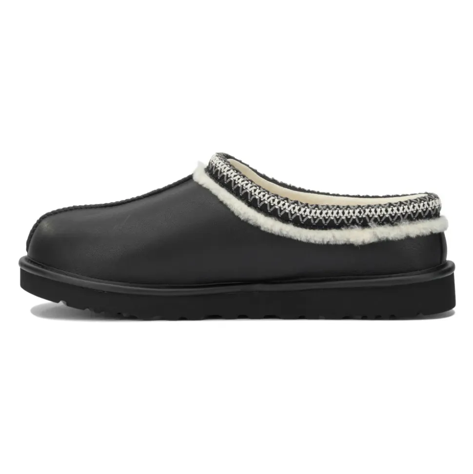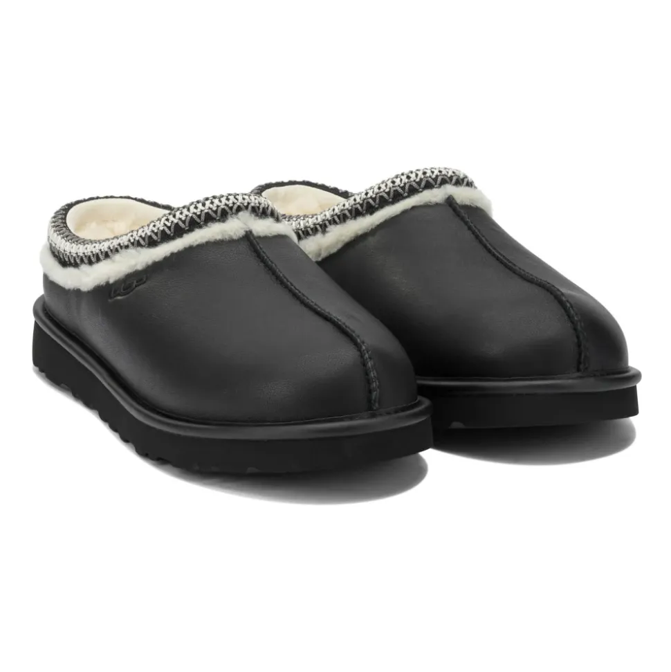 UGG Tasman Slipper kombinerer en læderoverdel med blødt UGGplush-for, der giver en polstret og let slip-on, ideel til hverdagsbrug derhjemme eller ude. Vigtige egenskaber: Sort | Læder | Polstret indersål | Varmt UGGplush™-for | Letvægts EVA-ydersål | Slip-on design | Skumfodseng for stødabsorbering | Polyester indersålsstøtte | Lav profil silhuet | UGGbraid-kant med dobbelte synlige syninger | Tekstureret krave | Varmpræget UGG-logo | Dimensioner og pasform: Lav profil slip-on silhuet | Komfortabel, tætsiddende pasform, der er velegnet til indendørs og udendørs brug | Sammensætning og pleje: Læder (overdel) | Uld (UGGplush-for og indersål) | TENCEL™ lyocell (UGGplush-for og indersål) | Polyester (binding/welt/indersålsstøtte) | Skum (fodseng) | EVA (ydersål; Treadlite by UGG eller sukkerrørs-EVA)