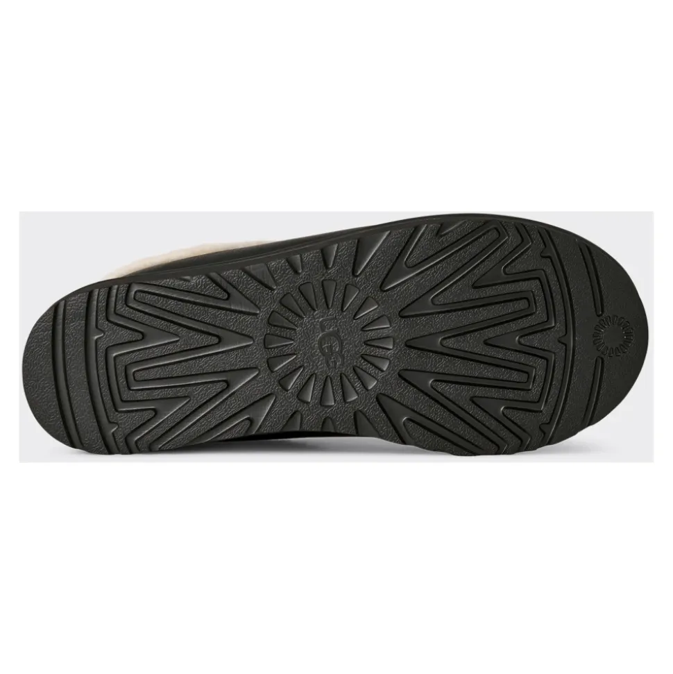 UGG Tasman Slipper kombinerer en overdel i ruskind med en synlig krave af fåreskind for varm og nem slip-on brug. Ideel til hurtig komfort indendørs eller til afslappet udendørs brug. Vigtige egenskaber: Sort | Nero | Ruskind | Fåreskindsforet | Stødabsorberende EVA-ydersål | Slip-on konstruktion | Nem at tage af og på | Flettet sort-hvid tekstiltrim | Synlig pelsforet krave | Logo på siden | Dimensioner og pasform: Lav slip-on pasform | Sammensætning og pleje: Ruskind | Fåreskind | Sugarcane EVA | Tekstil