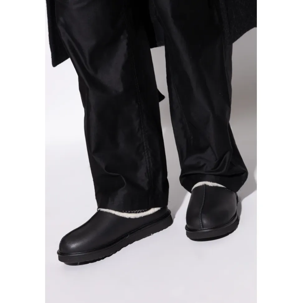 UGG Tasman Slipper kombinerer en markant, afrundet silhuet med blød, uldforet komfort. Fremstillet i glat sort læder med en blød, trimmet kant, er den designet til hverdagsbrug og pålidelig varme. Vigtige egenskaber: Sort | Læder | Termisk isolering | Blød indvendig komfort | Holdbar konstruktion | UGGplush foring (uld + lyocell) | Skumindersål for stødabsorbering | EVA-ydersål for letvægtsstøtte | Afrundet, fuld tå | Minimalistisk silhuet | Geometriske syninger omkring den øvre kant | Blød øvre kant | Dimensioner og pasform: Sålhøjde: 2 cm | Sålhøjde (højeste punkt): 3 cm | Sammensætning og pleje: Læder (overdel) | Uld (UGGplush foring) | Lyocell (UGGplush foring) | Skumindersål | EVA-ydersål.UGGs føles tætte i starten, men foret giver sig med tiden. Vi anbefaler din normale størrelse.