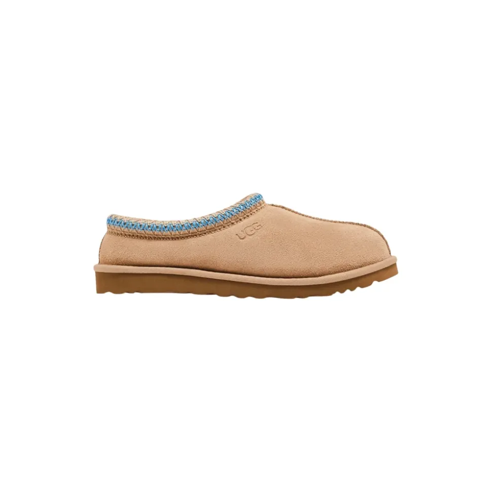 UGG Tasman Slipper kombinerer en overdel i ruskind med et blødt, uldforet interiør og en let EVA-sål, der gør den nem at smutte i og have på hele dagen. Designet til afslappet hverdagsbrug og balancerer komfort med en afslappet, alsidig silhuet. Nøgleattributter: Beige | Blanc | Ruskind | Blødt uldfor | Letvægts ydersål | Slip-on silhuet | Polstret/skum fodseng | EVA/Treadlite ydersål | Fletdetalje ved kraven | Blød tåform | Varme-præget UGG-logo | Sammensætning og pleje: Overdel i ruskind | Uldfor | Skum fodseng | EVA ydersål | Tekstil/nylonbinding