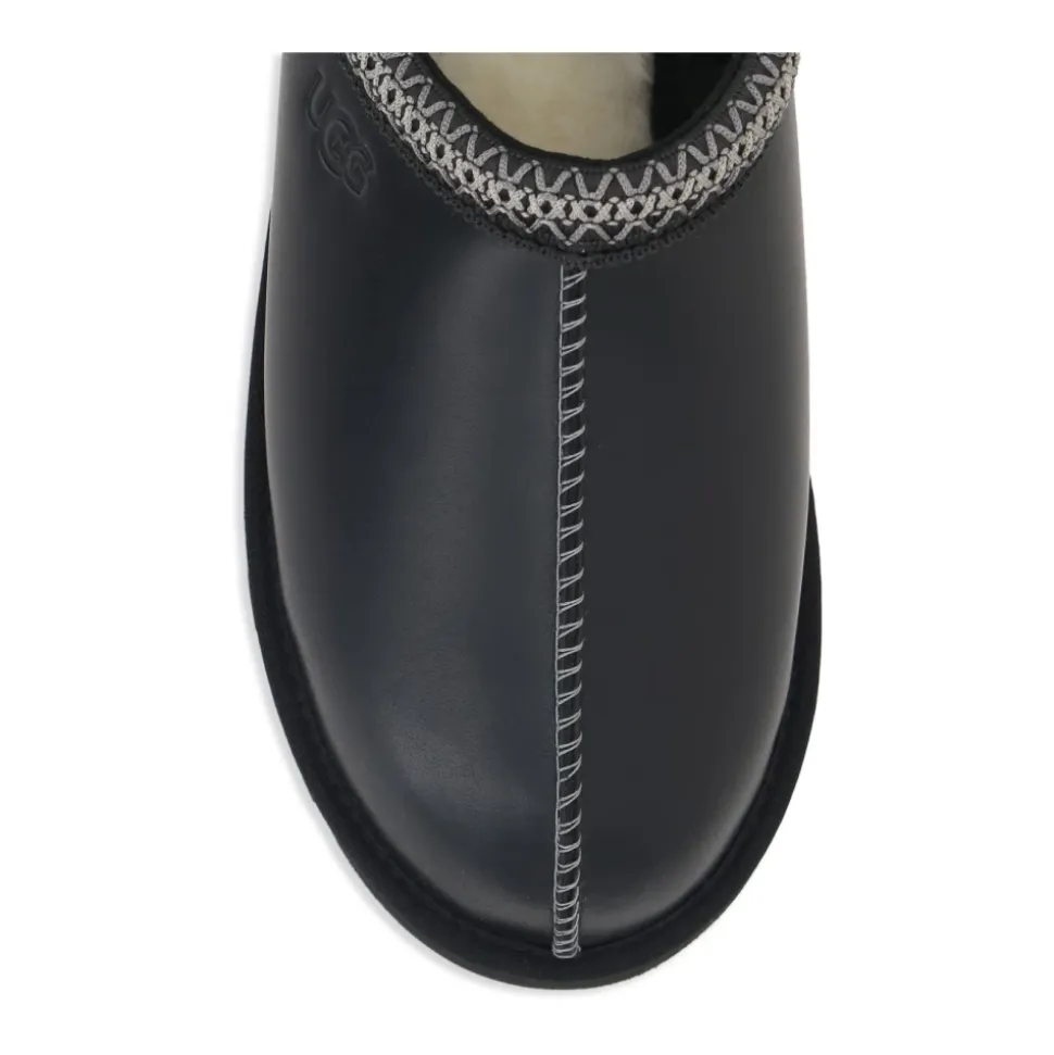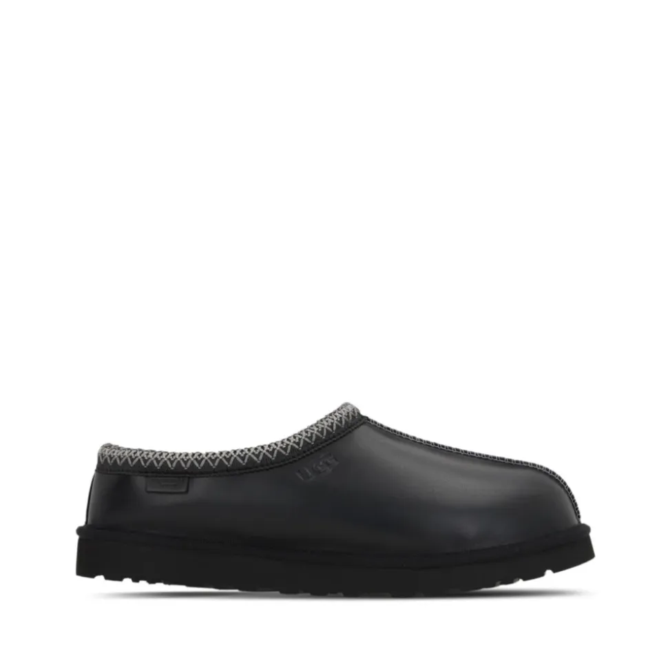 UGG Tasman Slipper kombinerer en glat læderoverdel med blødt UGGplush™-for og en let EVA-sål for komfortabel og nem hverdagsbrug. Nøgleegenskaber: Sort | Læder | Polstret skumindlægssål | Let EVA-ydersål | Slip-on konstruktion | 17 mm UGGplush™-for og fodseng | Polstret hælkappe | Rund tå | Varme-præget UGG®-logo | Vævet kantbånd | Dimensioner og pasform: Indlægssålens længde (størrelse 41): 26 cm | Sammensætning og pleje: Overdel: UGGbraid™ læder; 100% polyesterfibre | For: 17 mm UGGplush™ — 60% uld, 40% TENCEL™ lyocell | Fodseng: 17 mm UGGplush™ — 60% uld, 40% TENCEL™ lyocell | Indlægssål: Skum | Ydersål: Sugarcane EVA | Vævet kantbånd: 100% polyesterfibre | Fremstillet i Vietnam.UGGs føles tætte i starten, men foret giver sig med tiden. Vi anbefaler din normale størrelse.