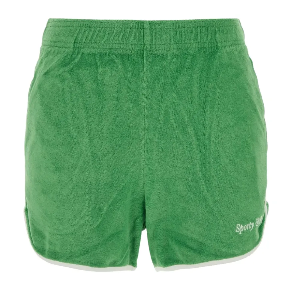 Sporty & Rich Terry Cloth Shorts leverer et afslappet, retro-atletisk look i blødt frottéstof – ideelt til afslapning eller afslappede udflugter. Nøgleattributter: Grøn | Frottéstof | Blødt frottéstof | Elastisk taljebånd | For- og baglommer | Delfinkant | Kontrastkant | Retro-atletisk styling | Dimensioner og pasform: Almindelig pasform | Sammensætning og pleje: 100% bomuld | Vask koldt.