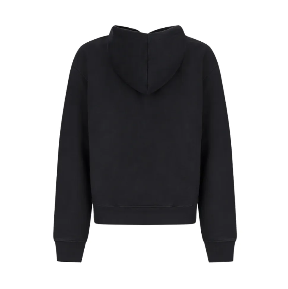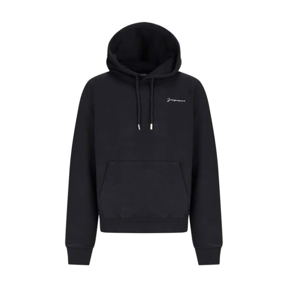 Jacquemus The Embroidered Sweatshirt er en bomuldshættetrøje, der kombinerer et diskret hvidt broderet logo med praktiske detaljer til hverdagsbrug og afslappet stil. Vigtige egenskaber: Sort | Bomuld | Justerbar hætte med snøre | Kængurulomme | Metalindgraverede snoreender | Hætte | Lange ærmer | Ribstrikkede manchetter og kant | Hvidt broderet logo på brystet | Mål og pasform: Almindelig pasform | Sammensætning og pleje: 100% Bomuld | Maskinvask kold, tørretumbles ved lav varme.