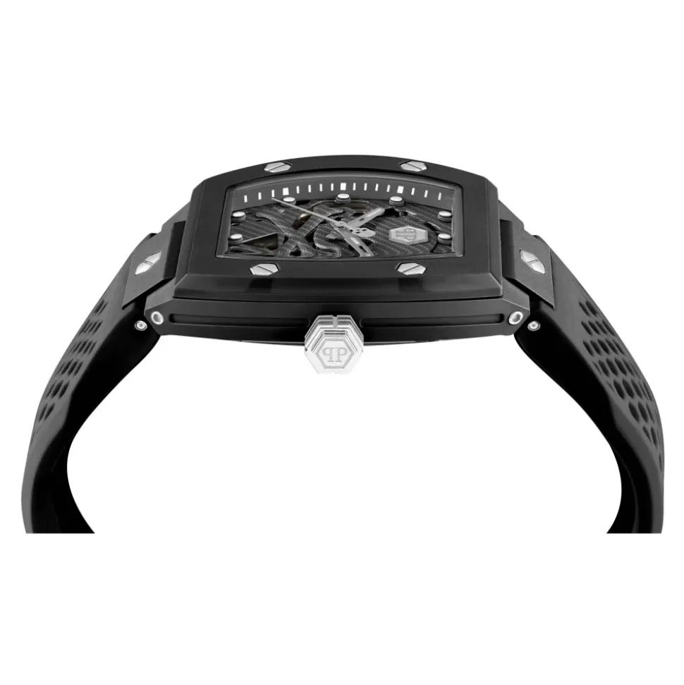 Løft din stil med The $keleton Watch fra Philipp Plein, et markant ur med et slående sort design og innovative materialer. Produkt detaljer: Sort | 3D-printet kulfiber | -keramik | Vandtæt op til 5 ATM | Automatisk urværk | Sort urkasse | Sort urskive | Sort rem | Dimensioner og pasform: Markant statement piece | Sammensætning og pleje: Opbevares på et køligt, tørt sted. Undgå direkte kontakt med vand.
