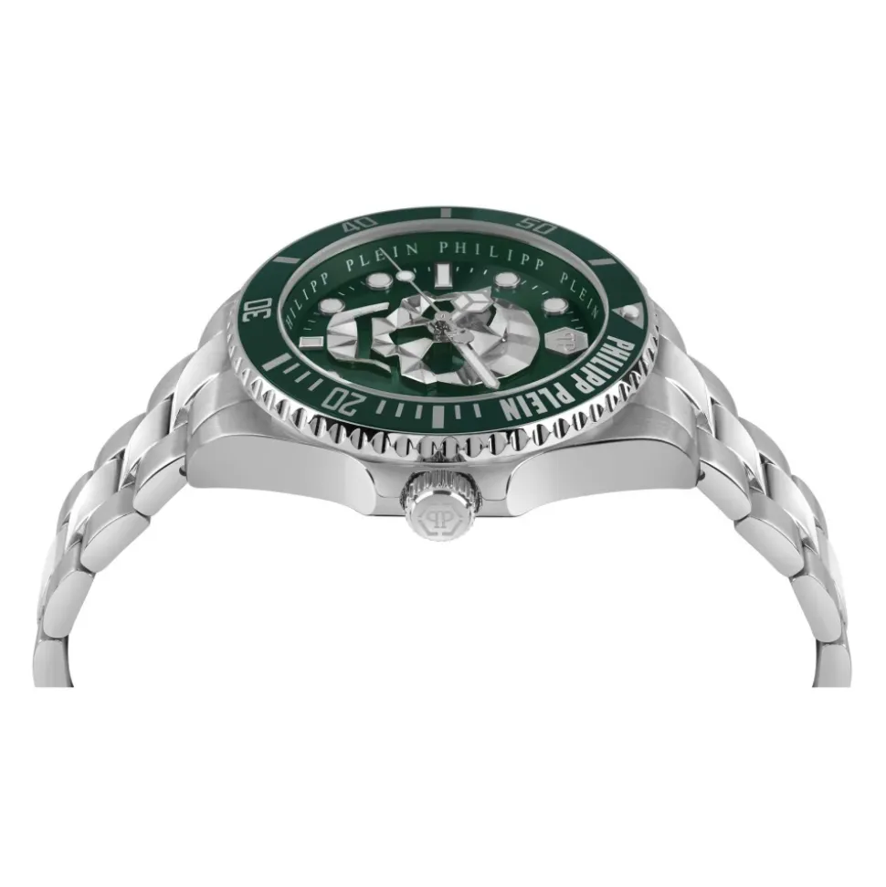 Philipp Plein The $kull Diver er et quartz ur i rustfrit stål, der kombinerer holdbar konstruktion med pålidelig tidtagning. Dets vandtæthed op til 10 bar og mineralglas gør det velegnet til hverdagsbrug og aktiv brug. Vigtigste egenskaber: Grøn | Uni | Rustfrit stål | Vandtæthed op til 10 bar | Ridsefast mineralglas | Quartz urværk | Præcis tidtagning | Armbånd i rustfrit stål | Sammensætning & pleje: Rustfrit stål | Mineralglas | Quartz urværk