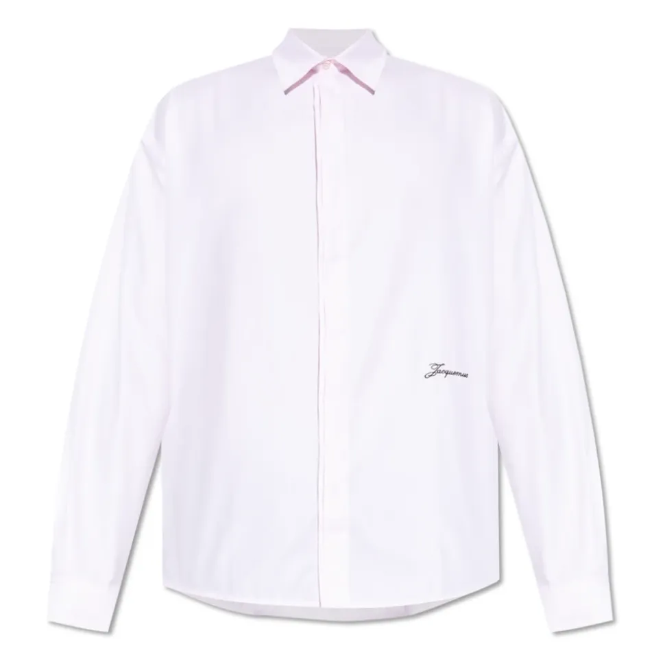 Jacquemus The Simon Long-Sleeve Shirt er en raffineret poplin skjorte i lyserød, designet til formelle og smarte, afslappede lejligheder. Dens rene silhuet og skjulte stolpelukning giver et minimalistisk, poleret look. Nøgleattributter: Lyserød | Bomuld | Poplin stof | Skjult knapstolpe | Firkantede manchetter med skjulte knapper | Perlemorsknapper | Rygstykke | Spids krave | Lange ærmer | Firkantede manchetter | Afrundet kant med sideslidser | Subtile broderede logo detaljer | Dimensioner & pasform: Modelhøjde: 193 cm | Bryst: 95 cm | Talje: 82 cm | Hofter: 93 cm | Modellen bærer størrelse: 50 | Lige pasform | Almindelig pasform | Sammensætning & pleje: 100% bomuld | Følg vaskeanvisningen.