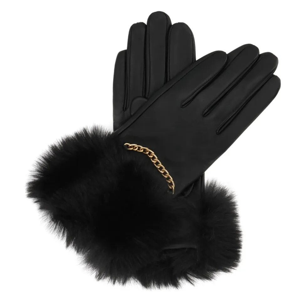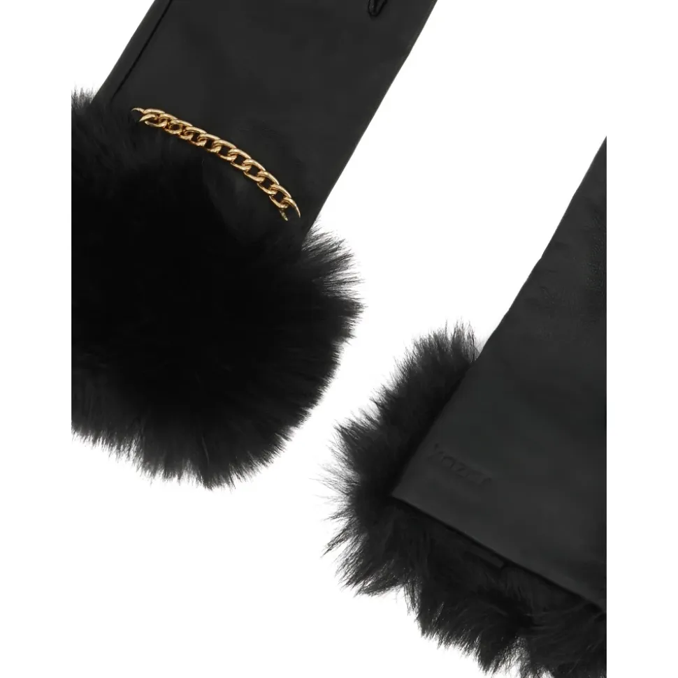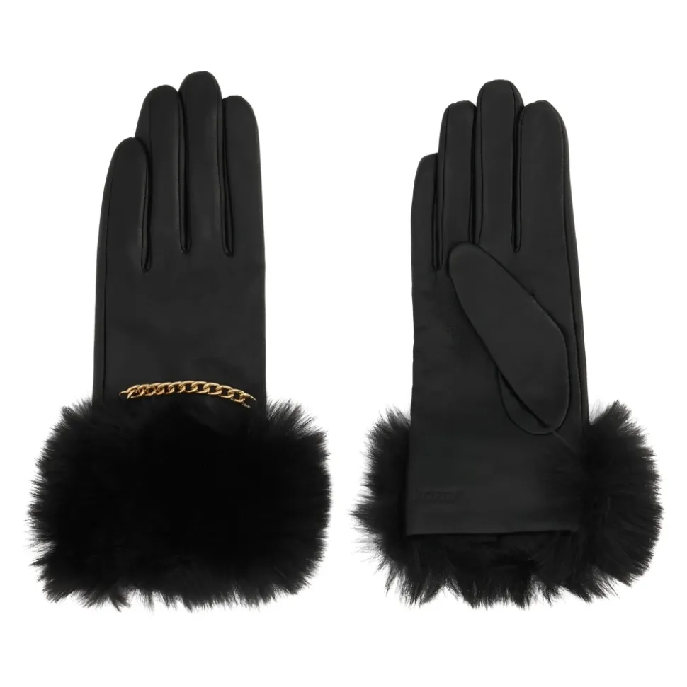 Kazar Tianna Handsker kombinerer narvlæder med en manchet i syntetisk pels og en dekorativ guldkæde for et varmt, raffineret statement-piece, der er ideelt til efterår og vinter. Vigtigste egenskaber: Sort | Narvlæder | Touchscreen-kompatibel | Isolerende manchet | Skræddersyet snit | Manchet i syntetisk pels | Detalje med guldkæde | Præcise syninger | Kontrast mellem glat læder og fluffy pels | Dimensioner og pasform: Skræddersyet pasform | Sammensætning og pleje: Narvlæder | Syntetisk pels