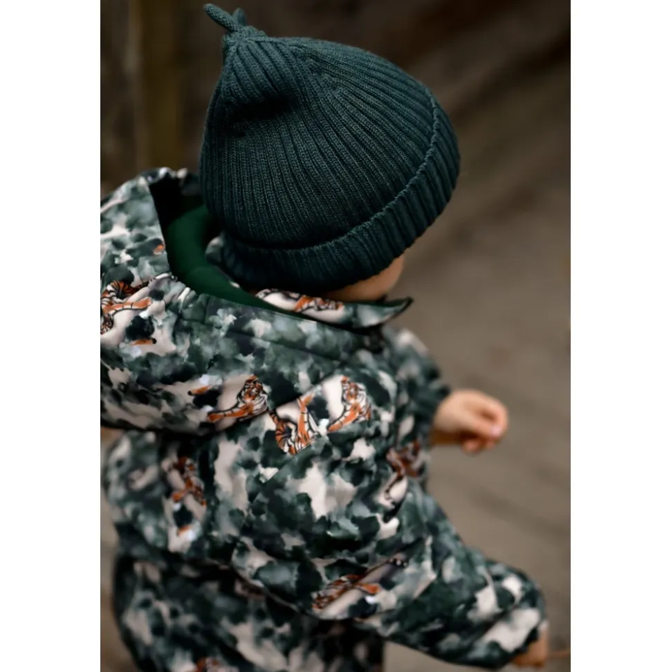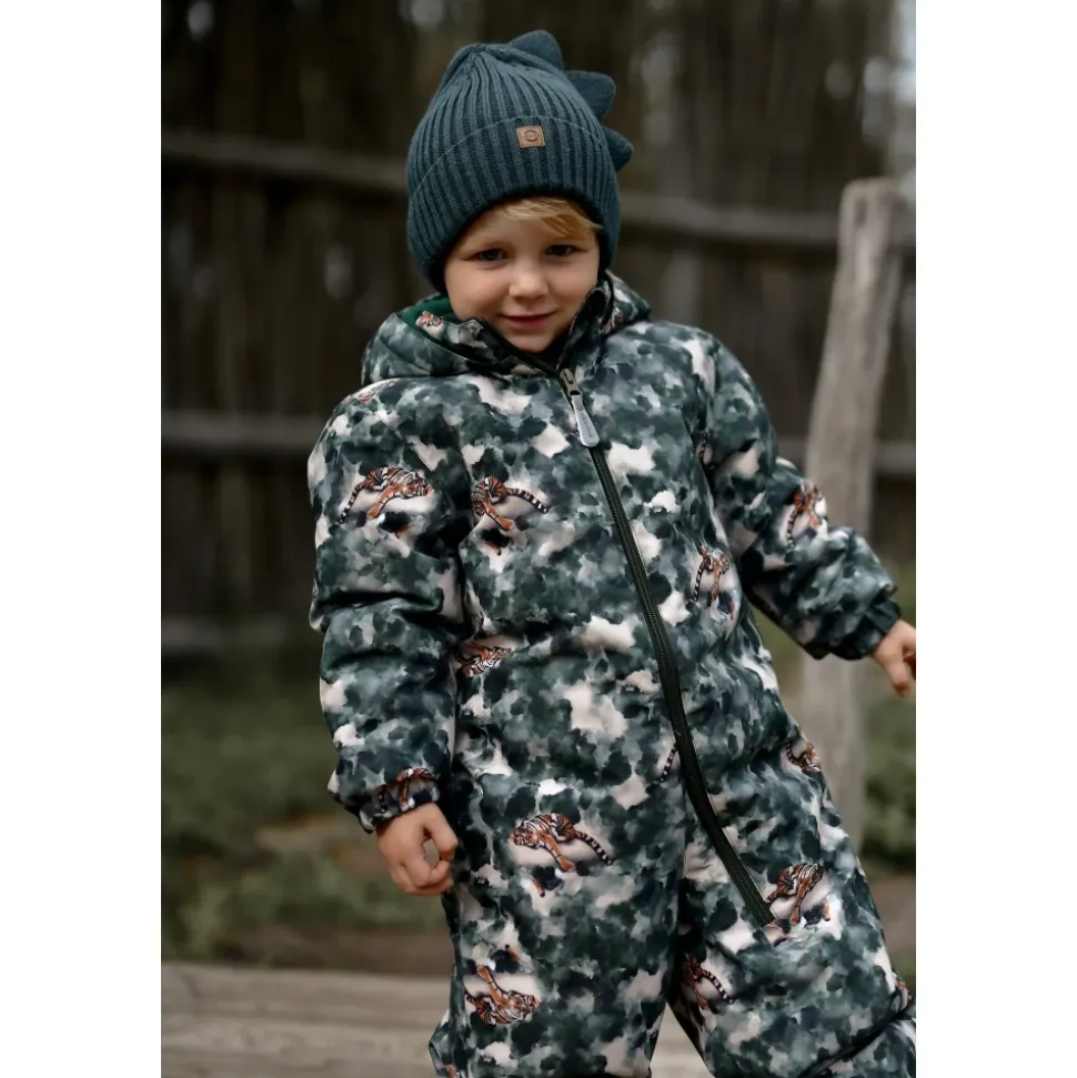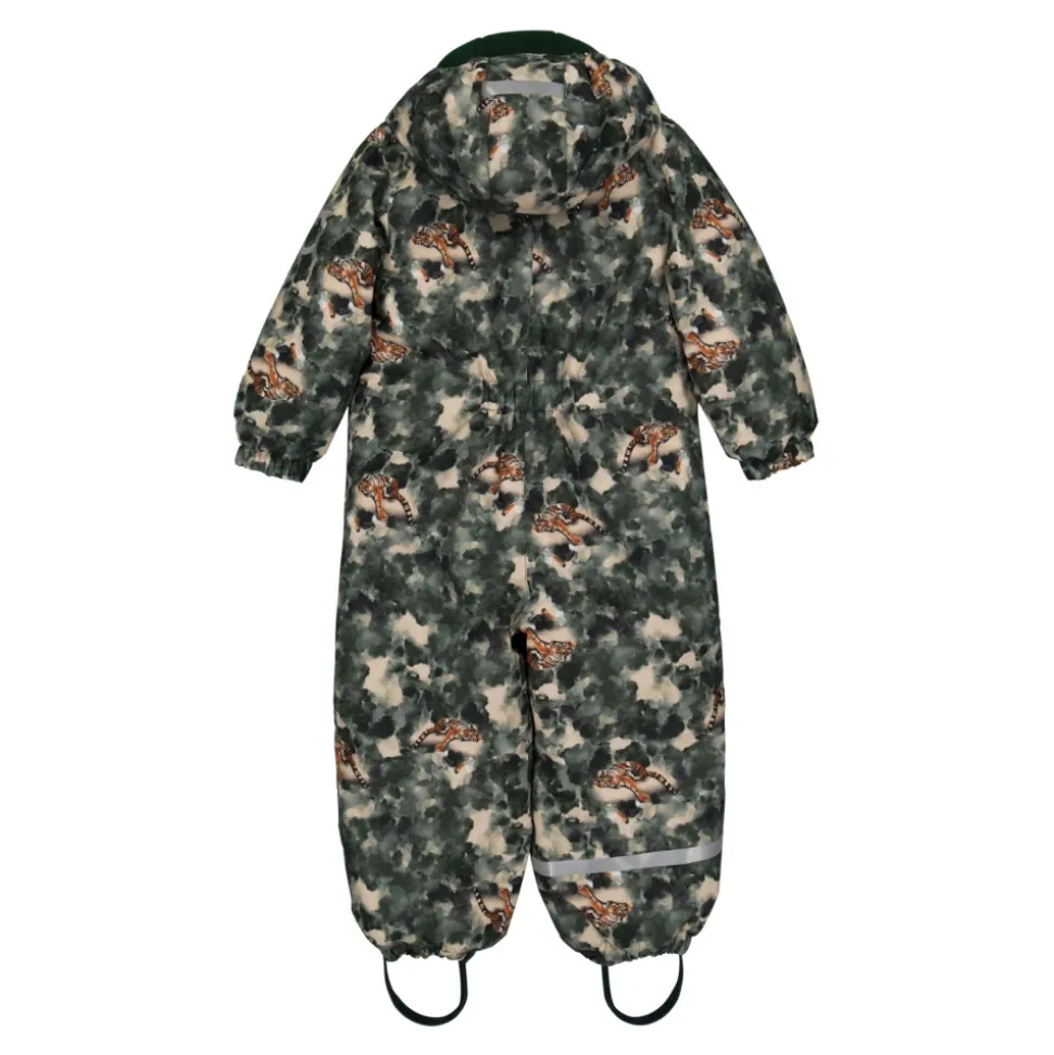 Mikk-Line – Snow Suit AOP, 11102 – Duffel Bag Lækker flyverdragt til de aktive børn fra danske Mikk-Line. Denne i et flot mønster i grønne nuancer med tiger print.Flyverdragten er meget praktisk og kan modstå mudder, snavs, regn, vind og sne. Den er en fremragende tilføjelse til vintergarderoben for at holde dit barn varmt, tørt og behageligt i løbet af den våde og kolde vinter.GENNEMTÆNKT DESIGN- Mønstret print (AOP)- Elastikkant i ærmerne og buksebenene giver en behagelig og pålidelig pasform.- Aftagelig hætte med trykknapper, der er nemme at tage af, hvis barnet sidder fast.- Navneskilt med plads til mere end ét navn, så endnu et barn kan få glæde af den.FUNKTIONELLE & TEKNISKE EGENSKABER- Aftagelig hætte med trykknapper, der er nemme at tage af, hvis barnet sidder fast.- Fodstropper i elastik, så man undgår at bukserne glider op, og fødderne holdes tørre.- Vandtæt med et vandsøjletryk på 20.000 mm, hvilket holder barnet tørt i kraftigt regnvejr.- Åndbarhed på 5.000 g/m2/24timer, for at minimere indvendig fugt der kan nedkøle barnet.- Holdbart materiale, der kan modstå op til 55.000 gnidninger (rubs).- YKK-lynlås med vedhæng og hagebeskyttelse, der gør det let og sikkert at åbne/lukke dragten.- Lavet med materialer- Certificeret af OEKO-TEX® Standard 100 Materiale: 40% Polyester , 60% Polyester Vask: 40 grader – vask med vrangen udHusk at følge vaske- og brugsanvisningStyle no.: 11102_Duffel Bag