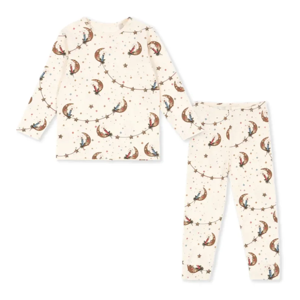 Konges Sløjd todelt pyjamas med print kombinerer blødt, ribbet stof med et eventyrligt måne- og stjerneprint for behagelige aftener og nem bevægelse. Dette todelte sæt kombinerer en langærmet top med afslappede bukser for et hyggeligt, raffineret look. Vigtige egenskaber: Beige | Creme | Bomuld | Blødt ribbet stof | Åndbar | Stræk for nem bevægelse | Skånsom mod sensitiv hud | Todelt sæt | Elastisk linning | Bukser med træk | Lange ærmer | Rund halsudskæring | Eventyrprint med måner, stjerner og guirlande | Ribbet tekstur | Dimensioner og pasform: Regular fit | Sammensætning og pleje: 95% bomuld, 5% elastan | Maskinvask 30°C. Strygesikker.