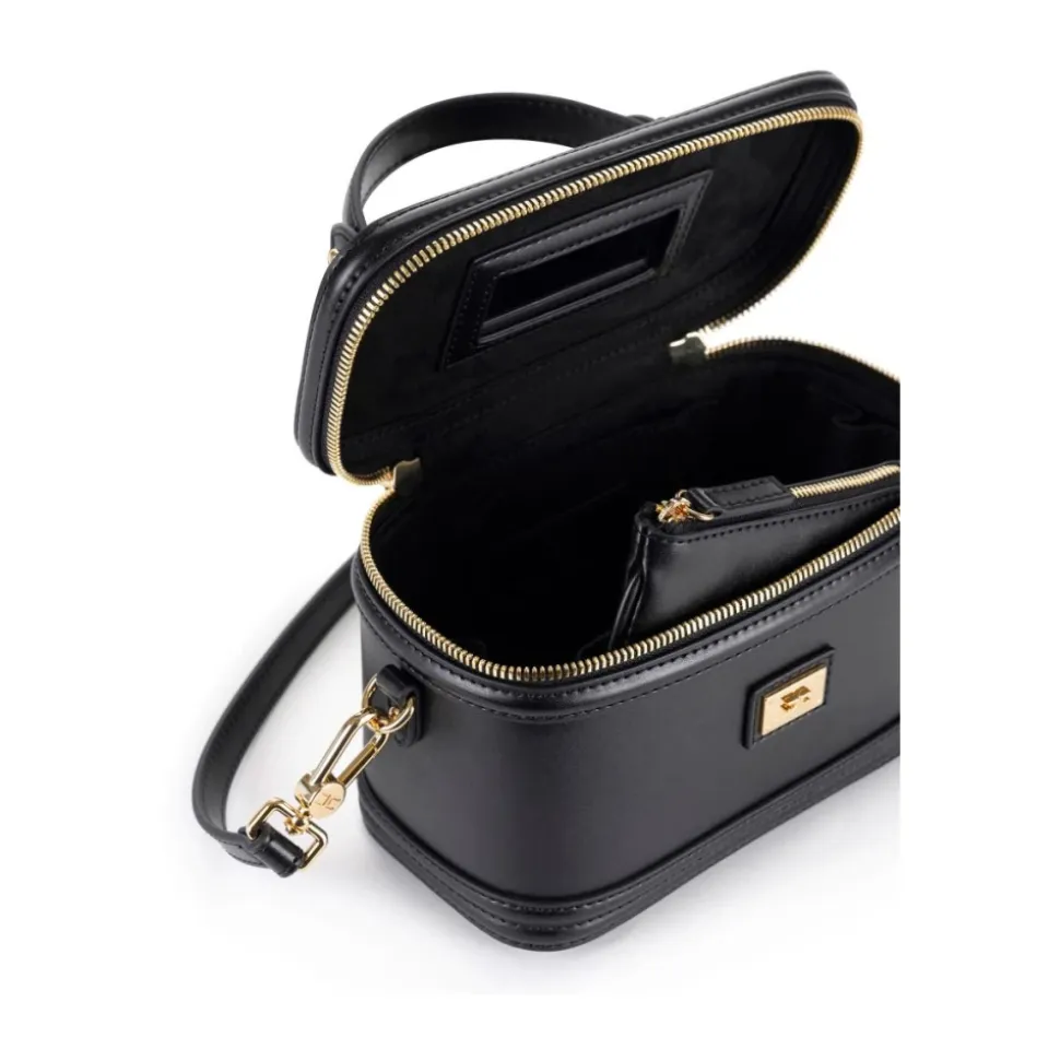 Elisabetta Franchi toilettaske til rejsebrug er et kompakt rejsetilbehør, der er afsluttet med guldfarvet hardware. Designet til at rumme dine toiletartikler, den glider let ned i bagagen eller en større taske. Vigtige egenskaber: Sort | Polyurethan | Holder toiletartikler | Guldfarvet hardware | Rejsevenligt design | Mål og pasform: 19 cm x 13 cm x 10 cm | One size | Sammensætning og pleje: 100% polyurethan